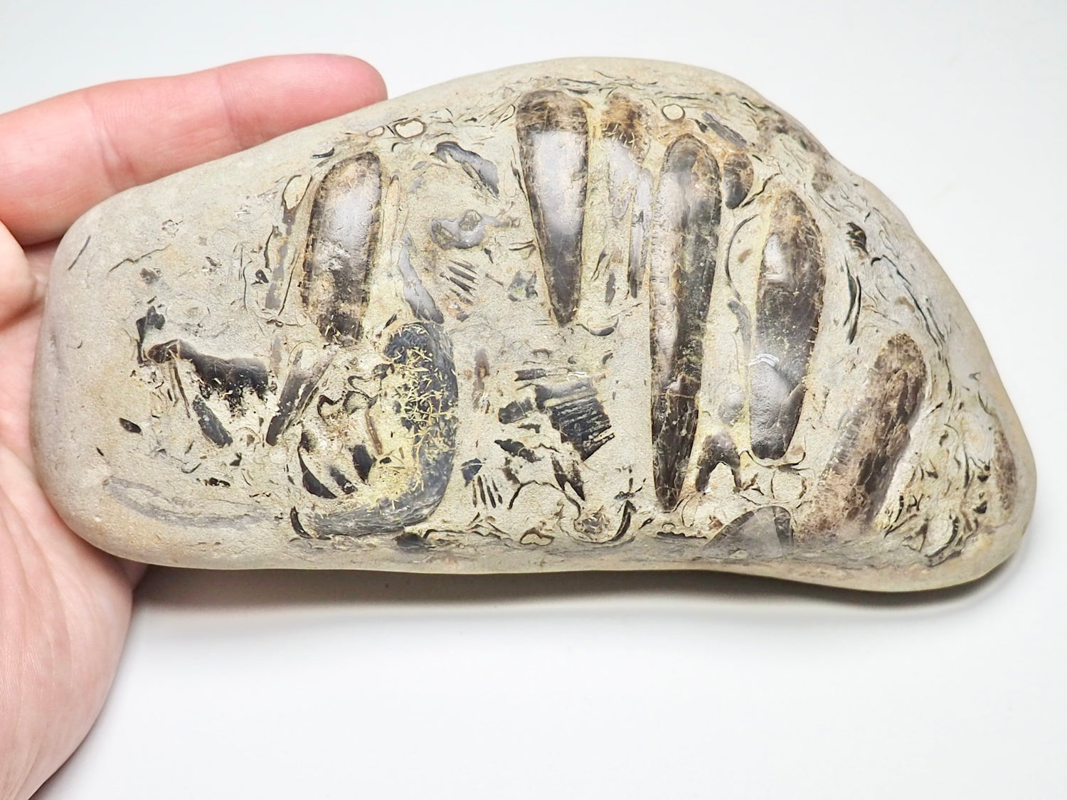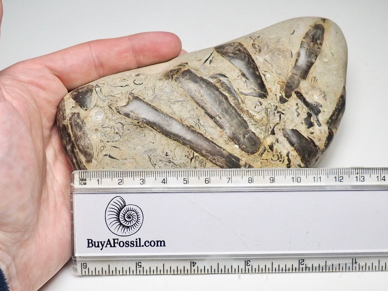A belemnite battlefield (Cluster of belemnites) which has been hand polished to a beautiful shine.