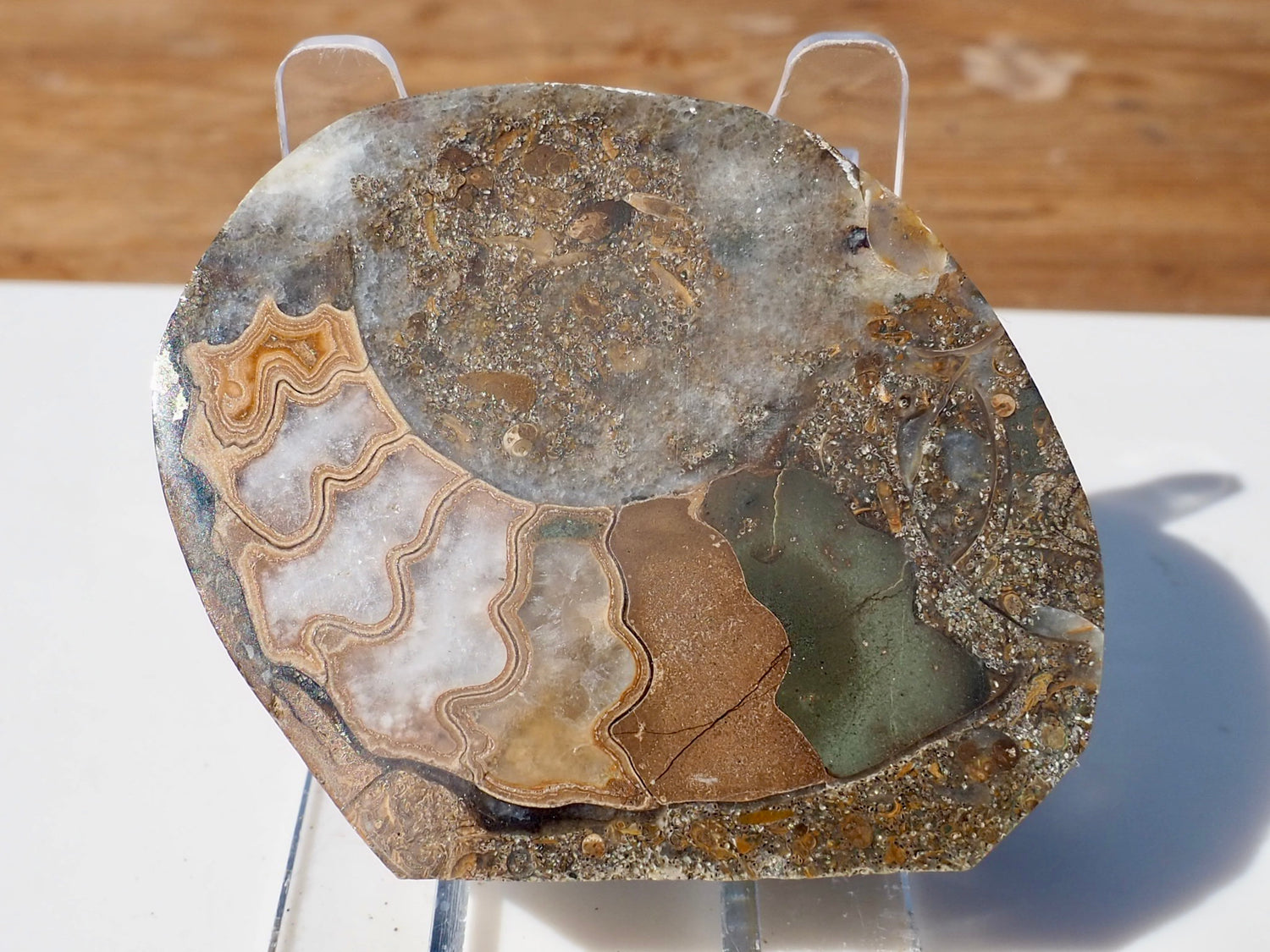 A stunning cut and polished ammonite available for sale with a Cutbase