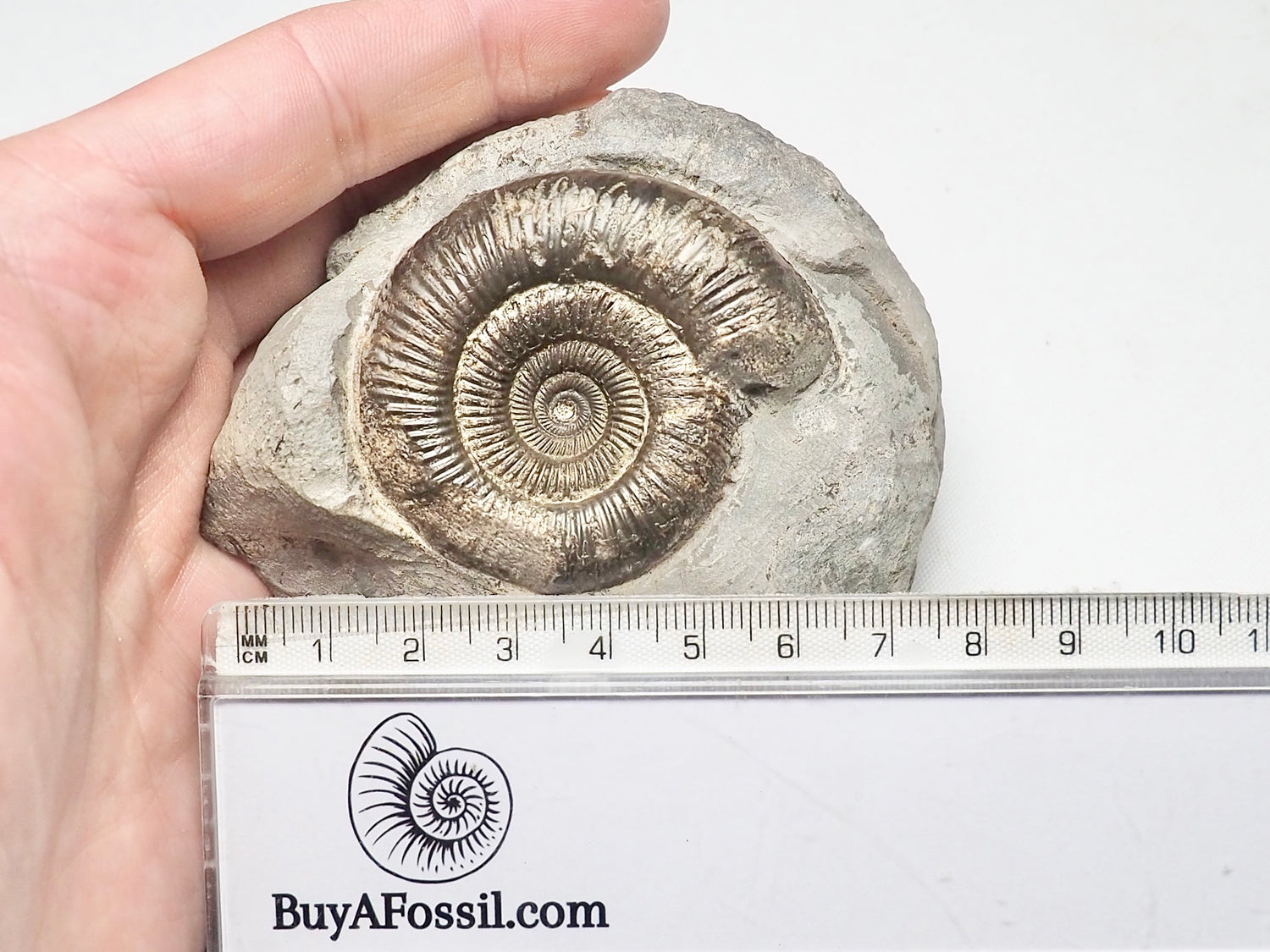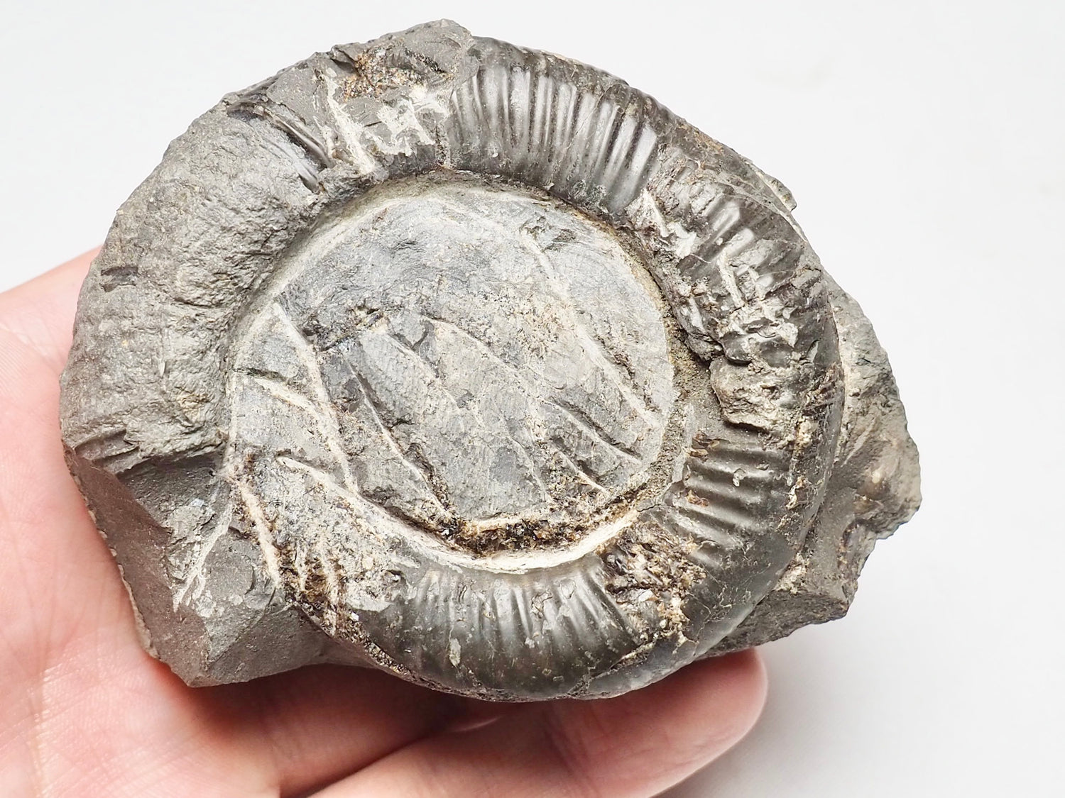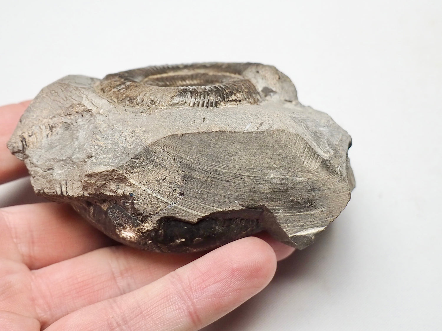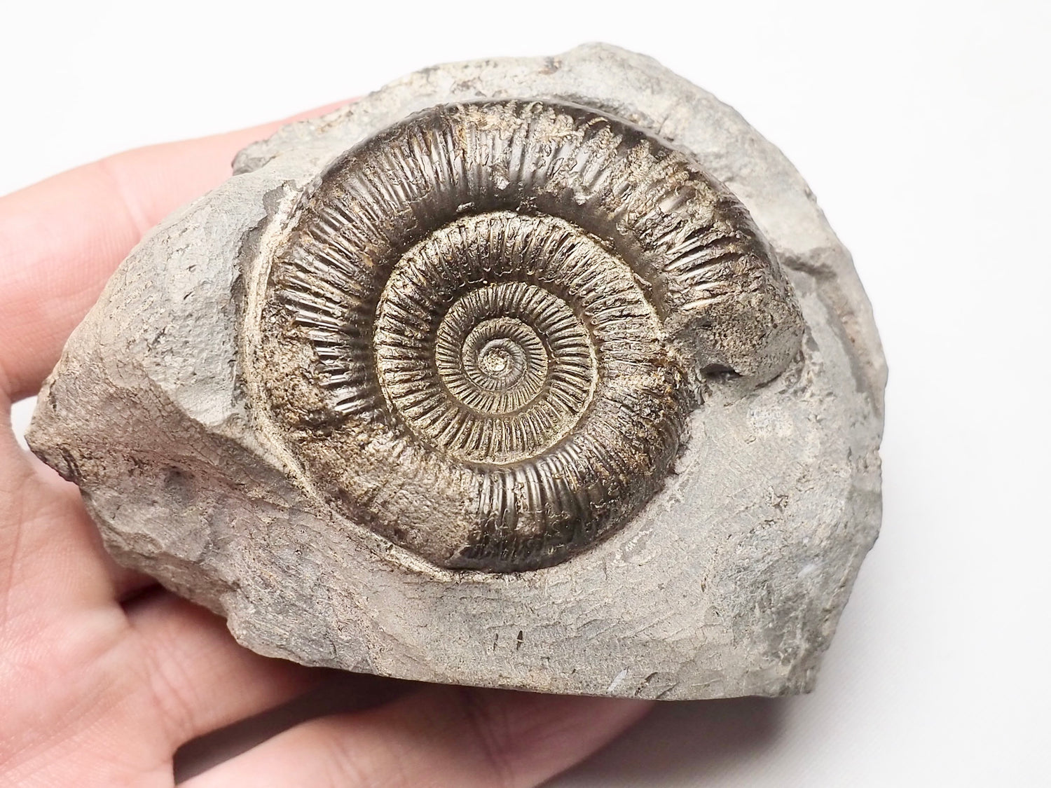 A dactylioceras ammonite fossil found near Whitby on the Yorkshire Coast. There is another poorly preserved ammonite on the back of the rock.