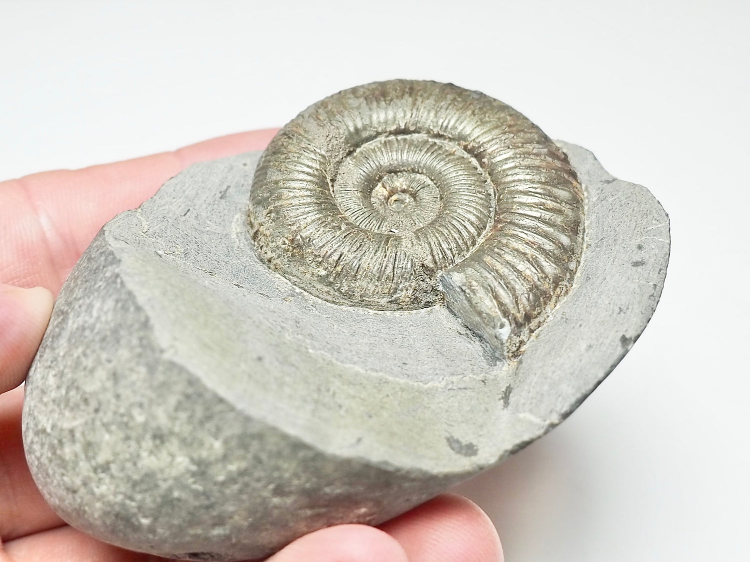 This genuine Dactylioceras ammonite fossil was discovered on the famous Yorkshire Coast near Whitby, one of the most well-known Jurassic fossil locations in the United Kingdom.