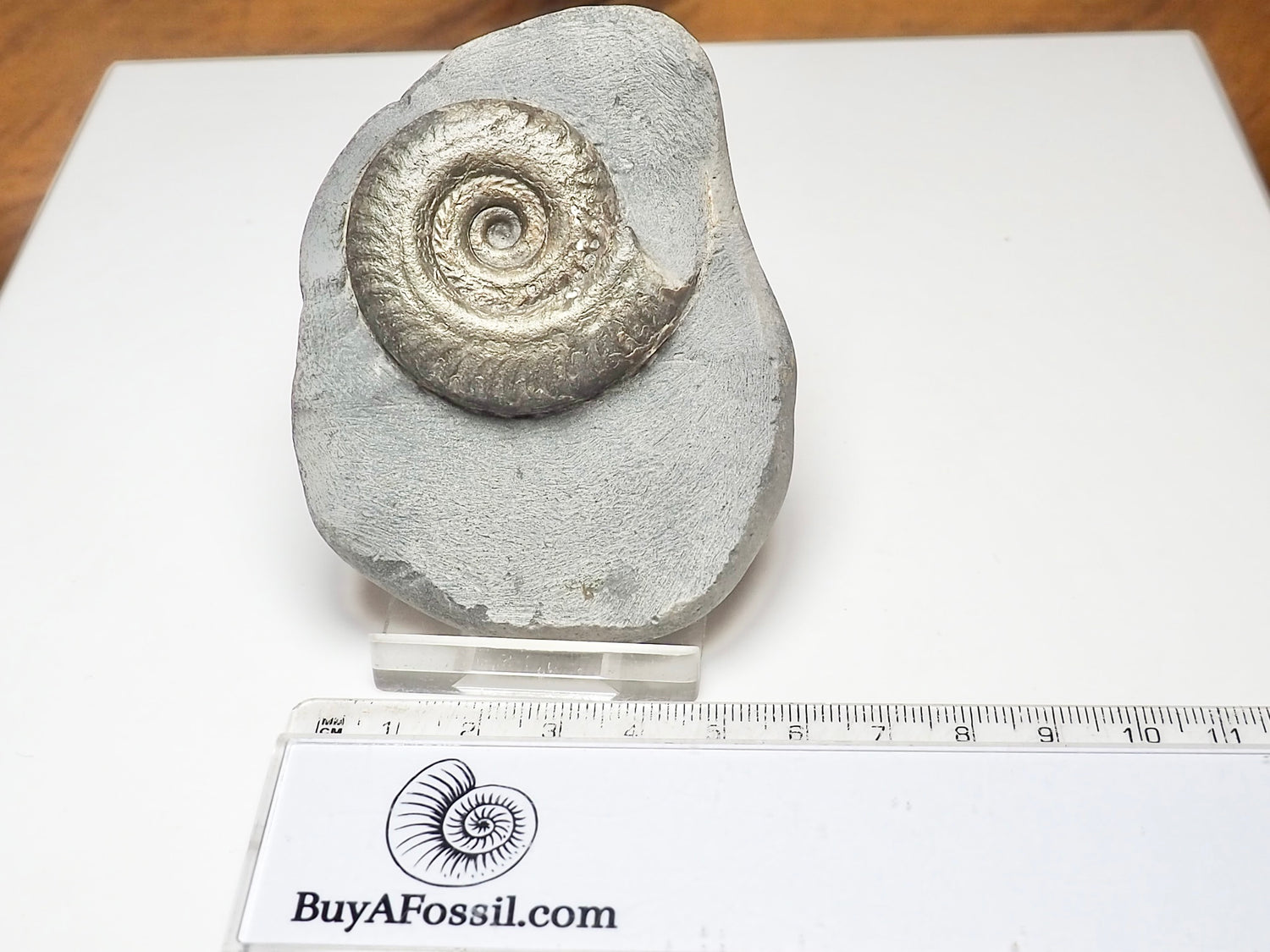 This genuine Hildoceras ammonite fossil was discovered on the famous Yorkshire Coast near Whitby, one of the most important Jurassic fossil locations in the United Kingdom.