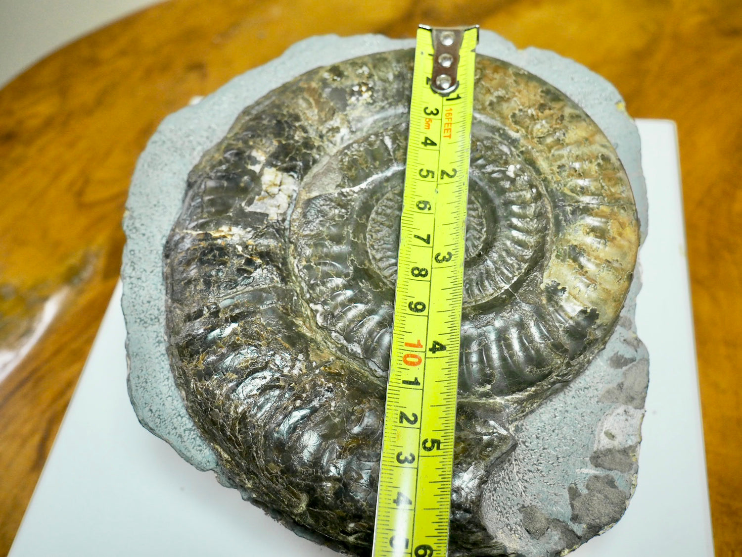 Nicknamed the “Rock Pool Monster”, this impressive specimen measures around 6 inches and was found in a rock pool along the Yorkshire Coast. Its size and presence make it a standout example of this classic Jurassic ammonite.