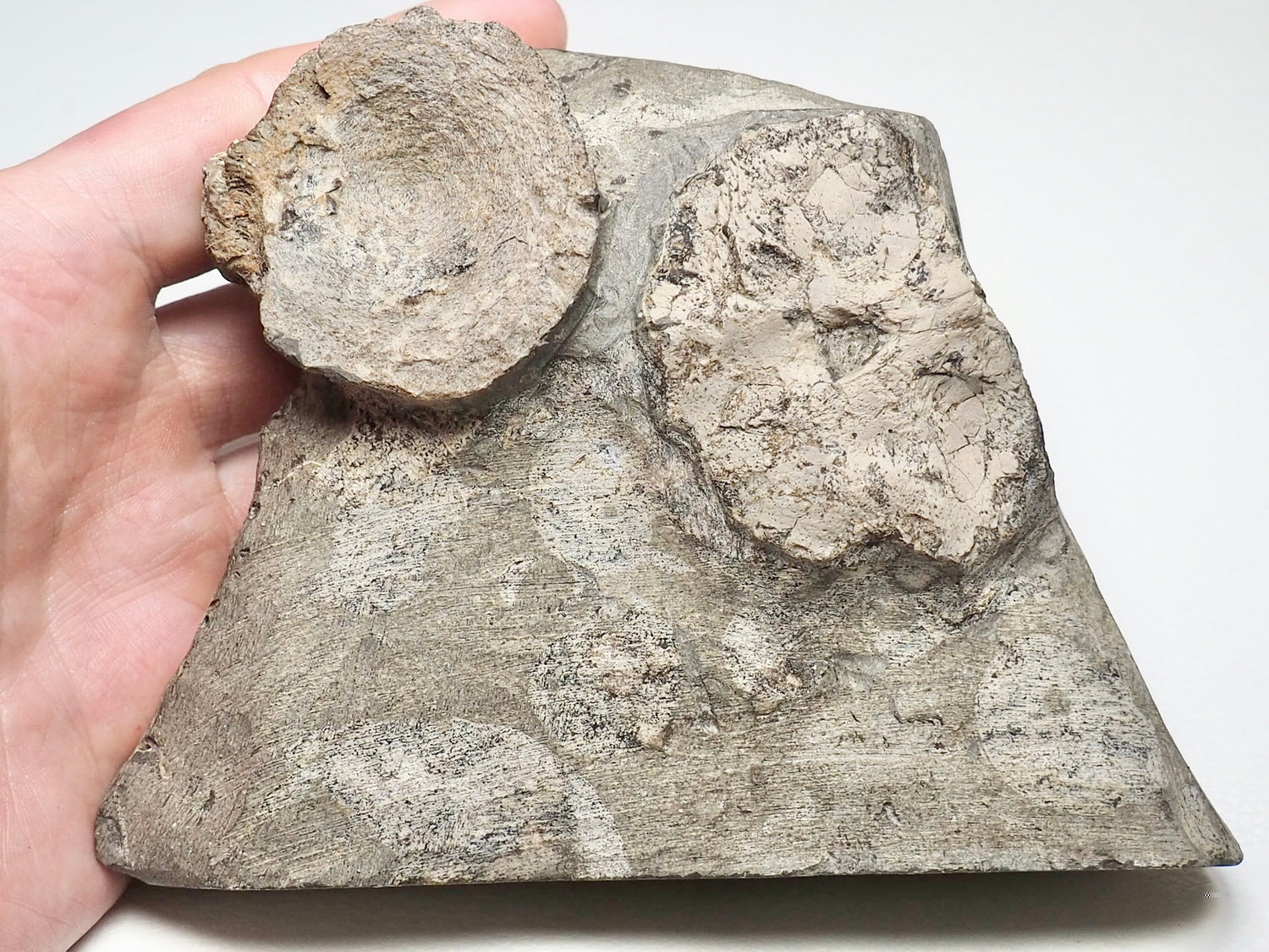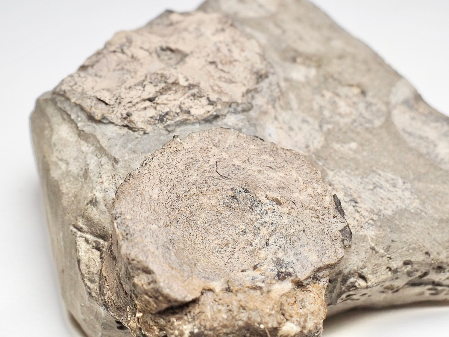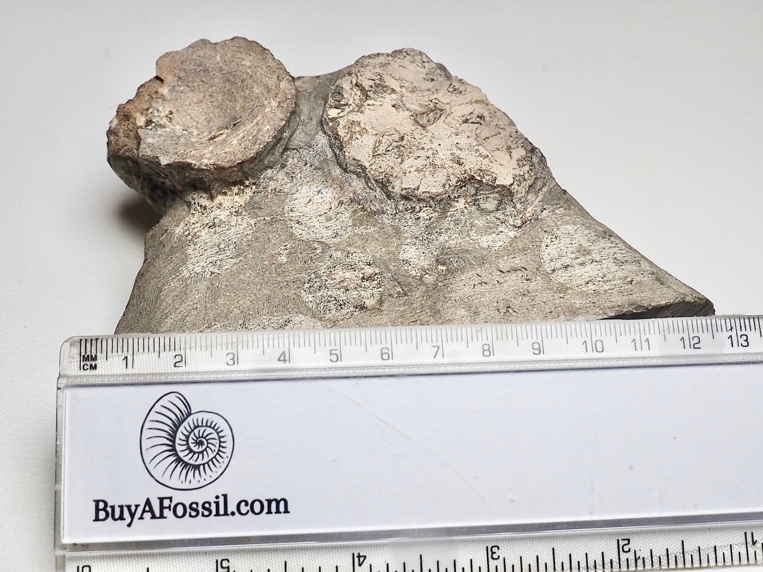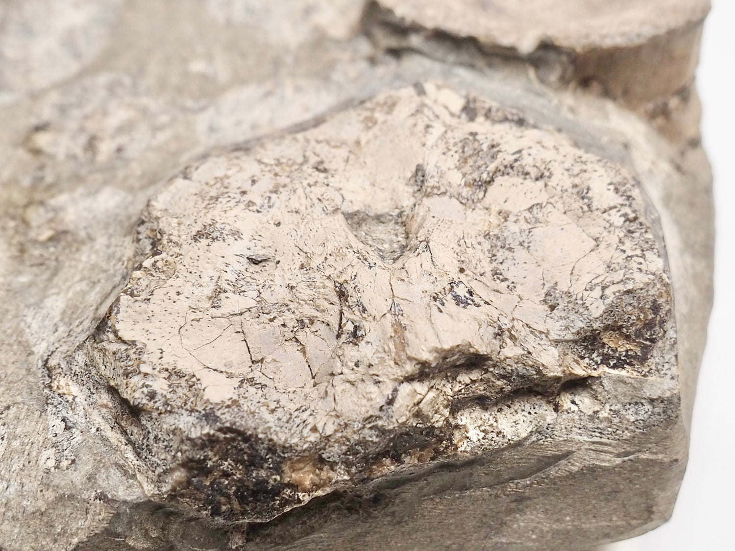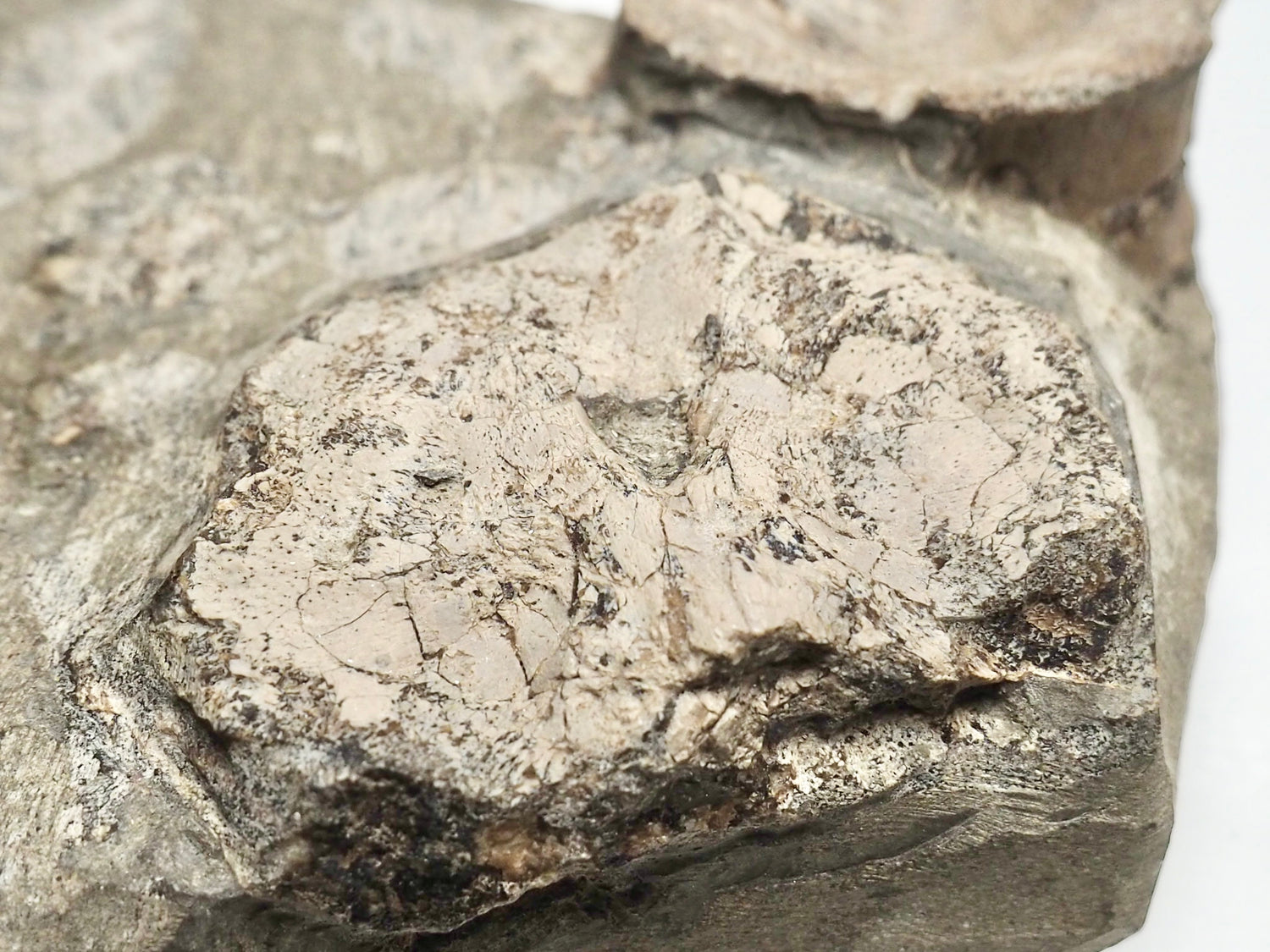 A very unique piece here. Offered for sale is a ichthyosaur vertebra and a skull element next to it. I believe it is a Basioccipital Bone. An ichthyosaur basisphenoid, a bone from the rear of the skull which would have sat between the skull and the spine.