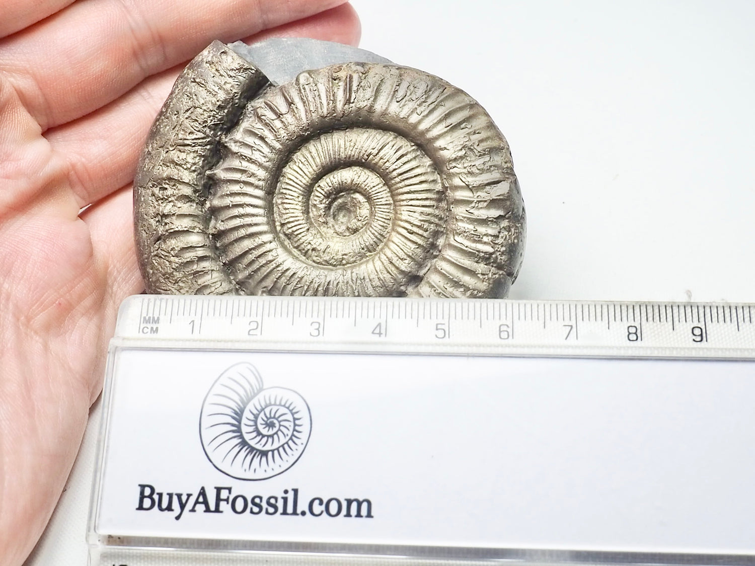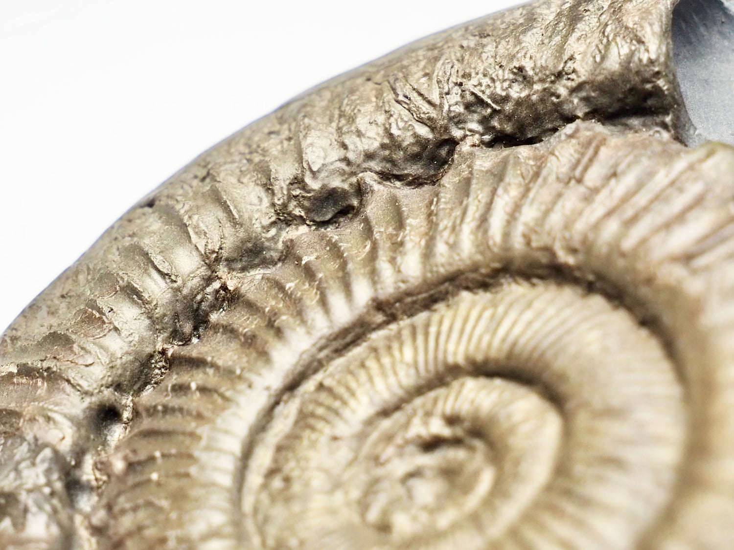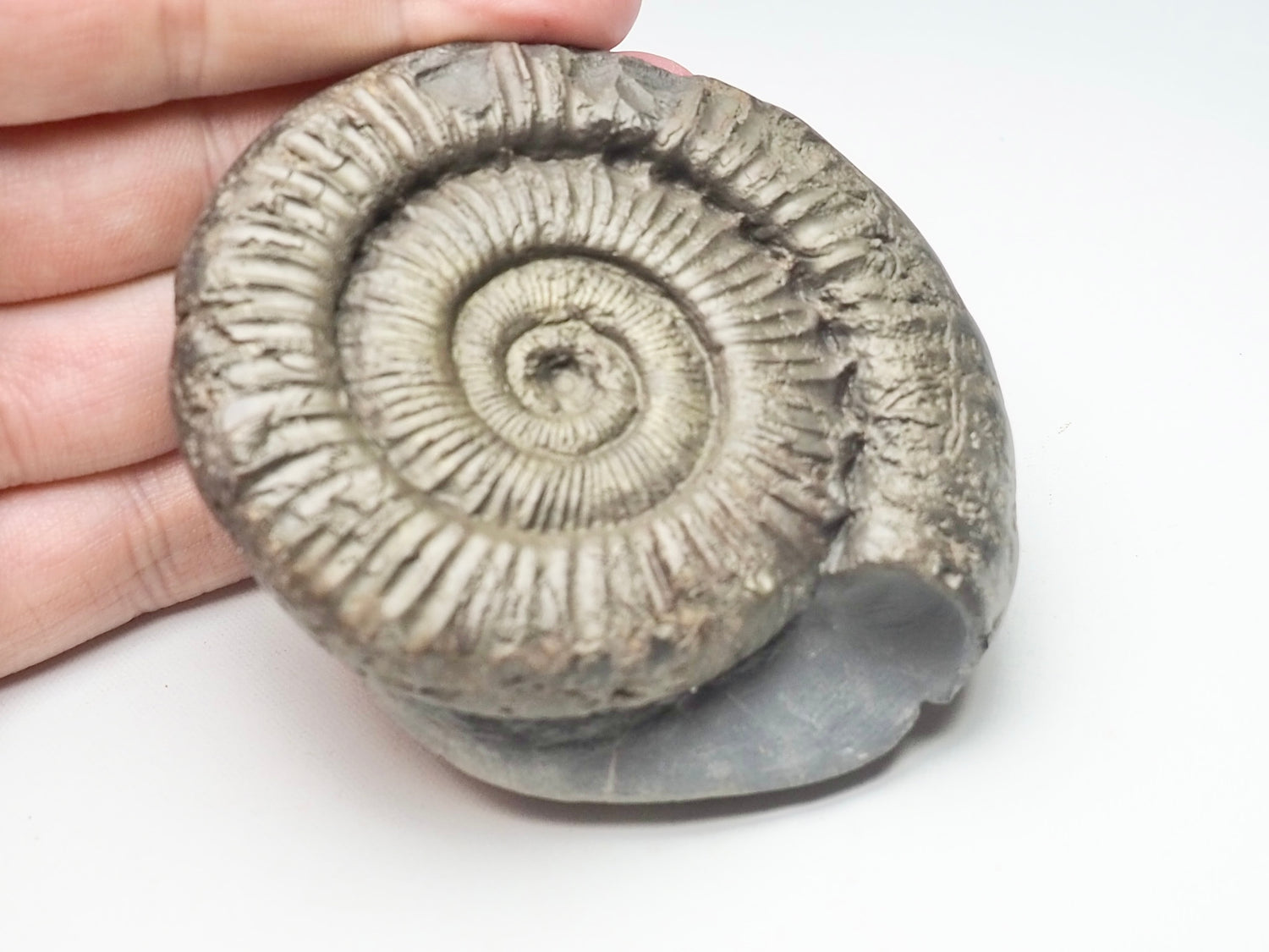 A Peronoceras ammonite fossil found near Whitby on the Yorkshire Coast. This species has little nodes or spikes. Prepared out of the nodule.