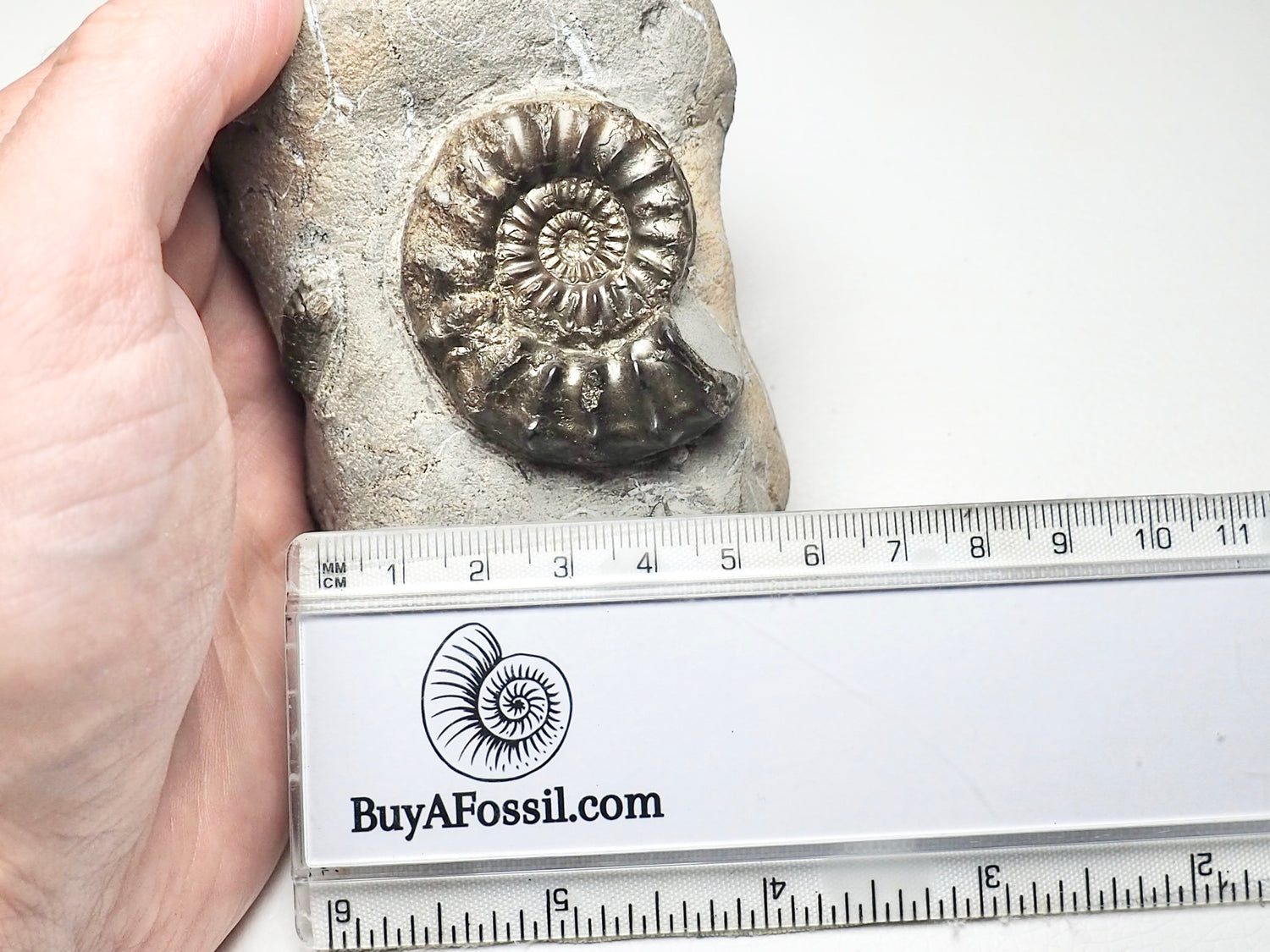 It is a rarer found species to the Whitby ammonites with a cut base.