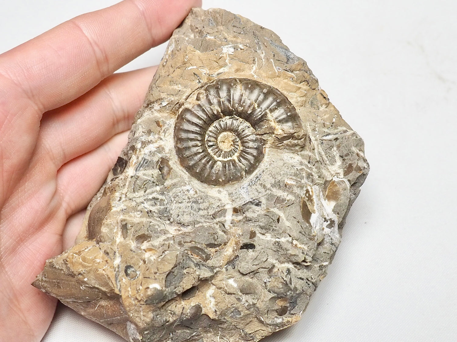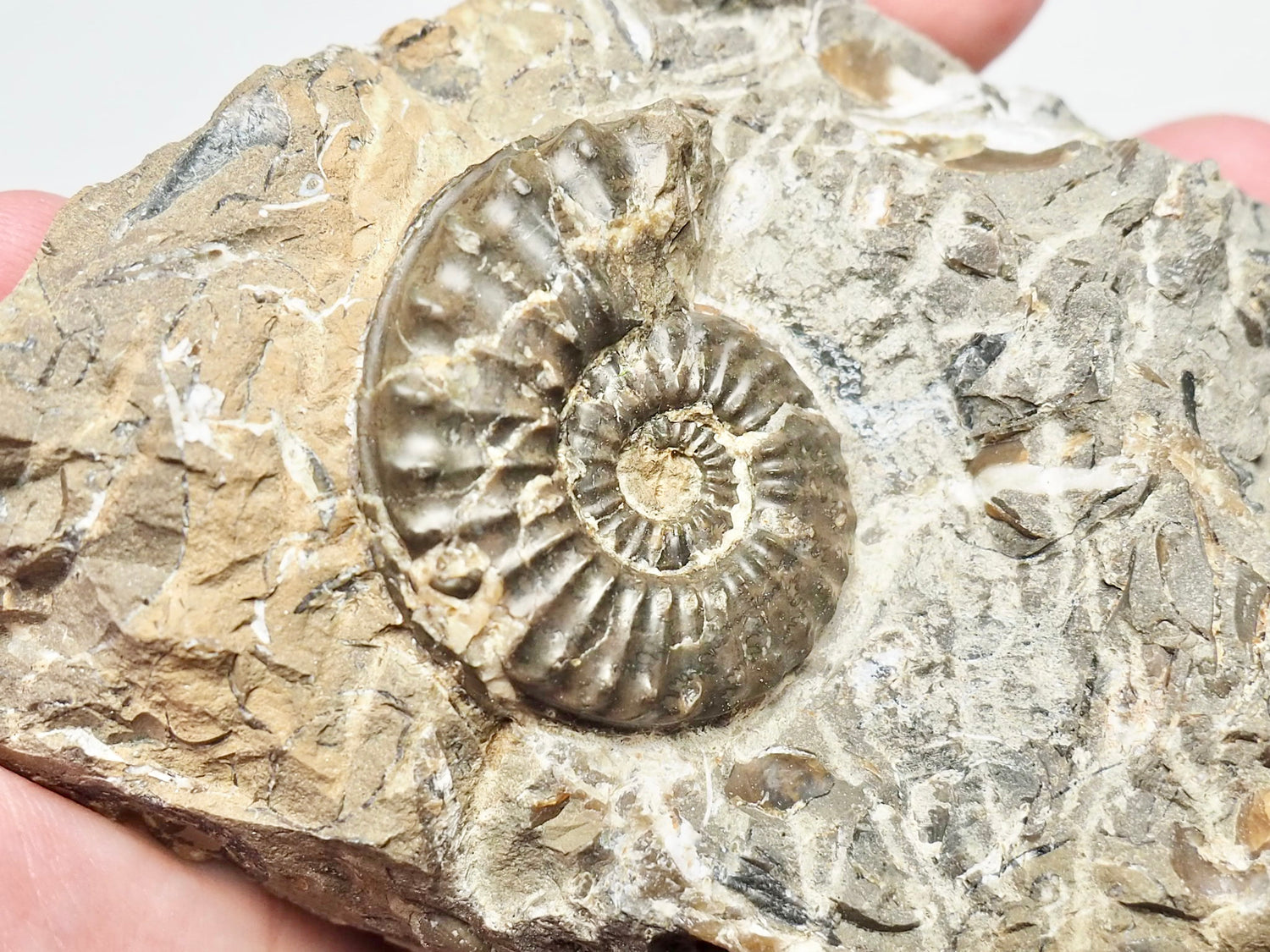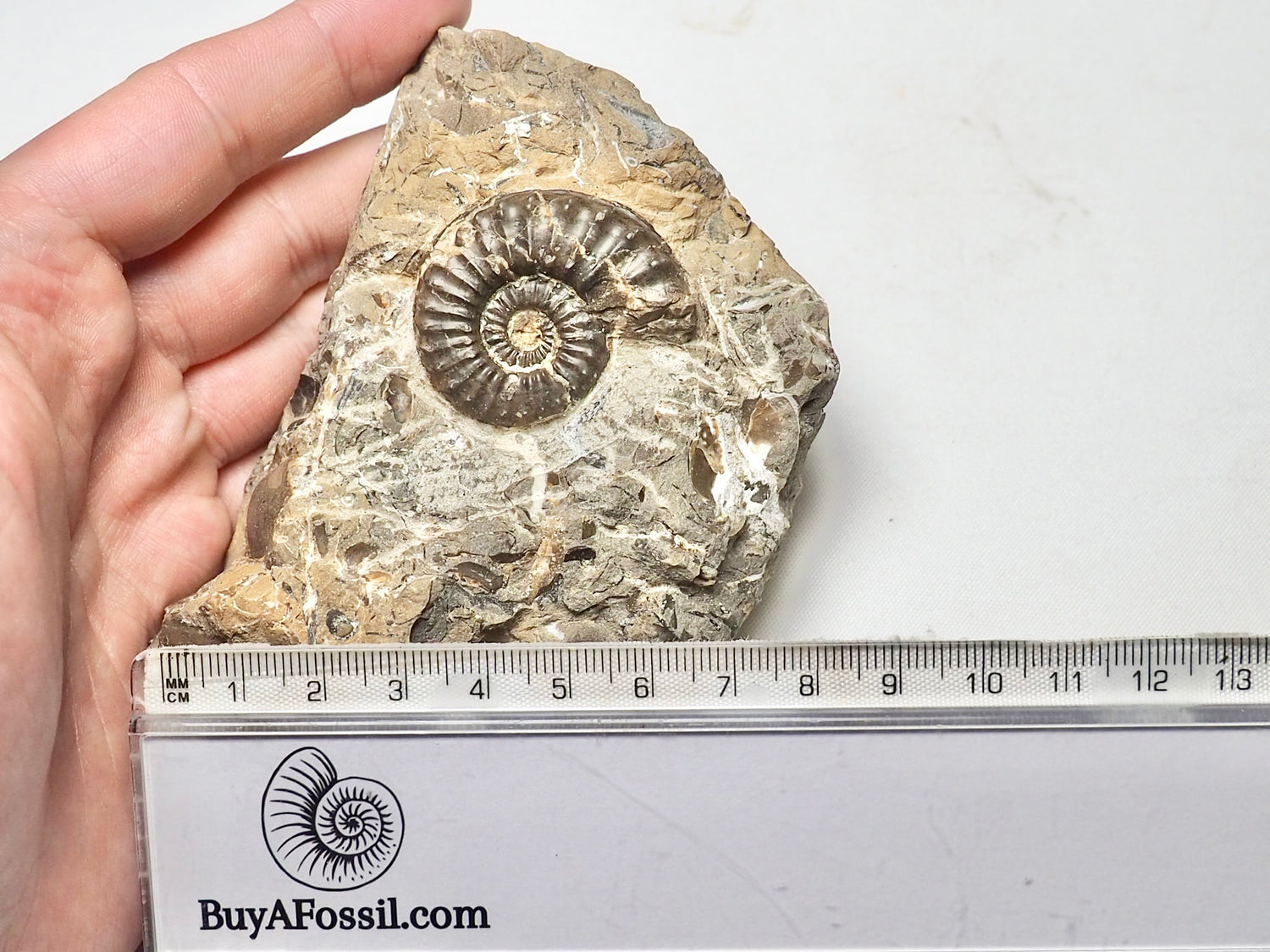 A prepared Pleuroceras species of ammonite fossil found on near Whitby