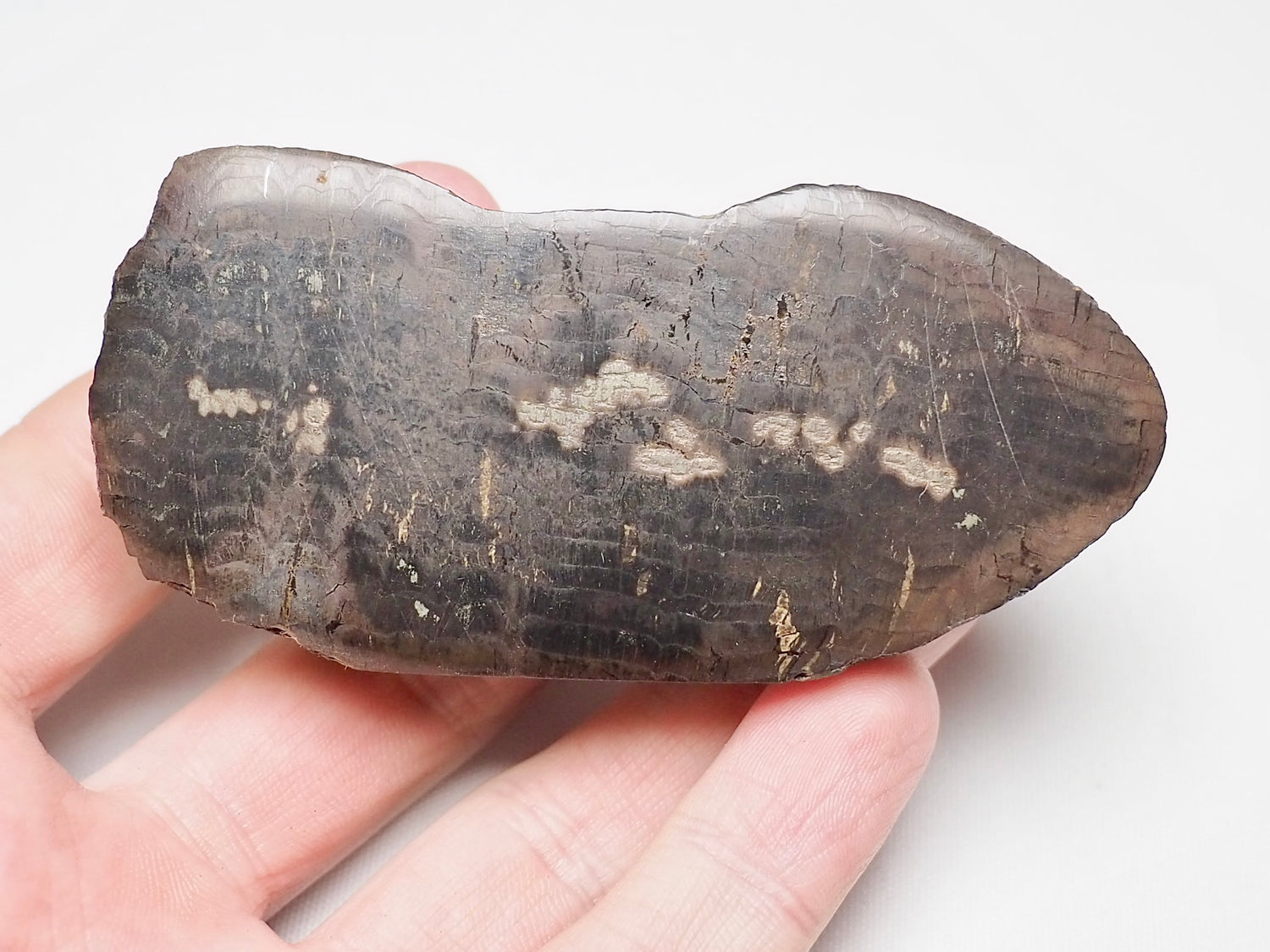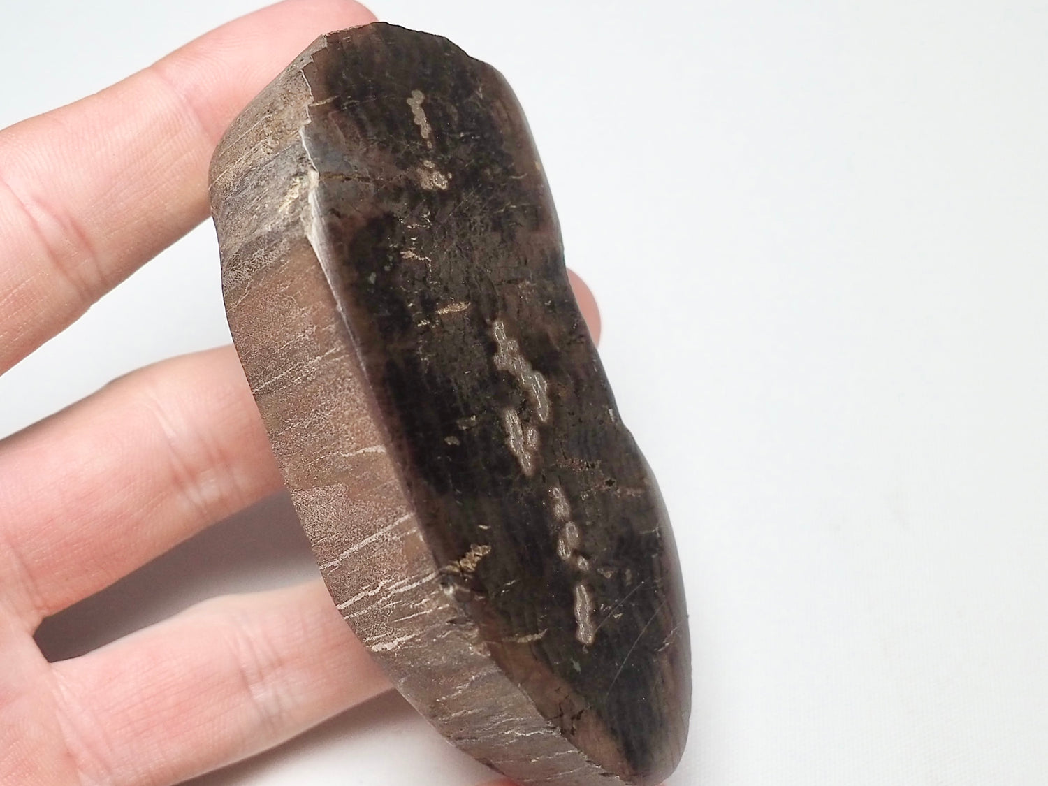 A one side polished piece of jurassic fossil wood. Found on the beach near Whitby.