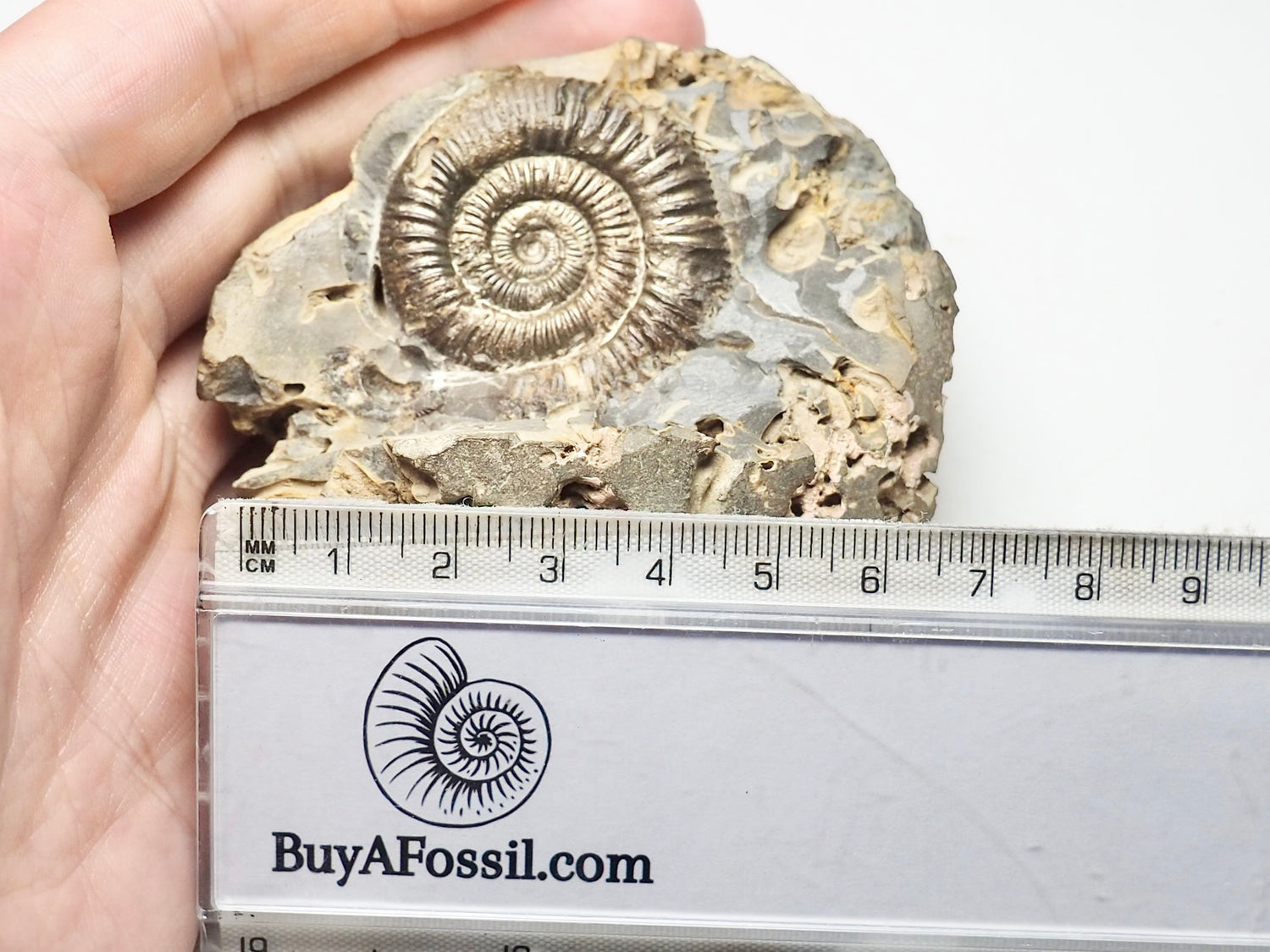 A prepared Dactylioceras double fossil found near Whitby on the Yorkshire Coast.