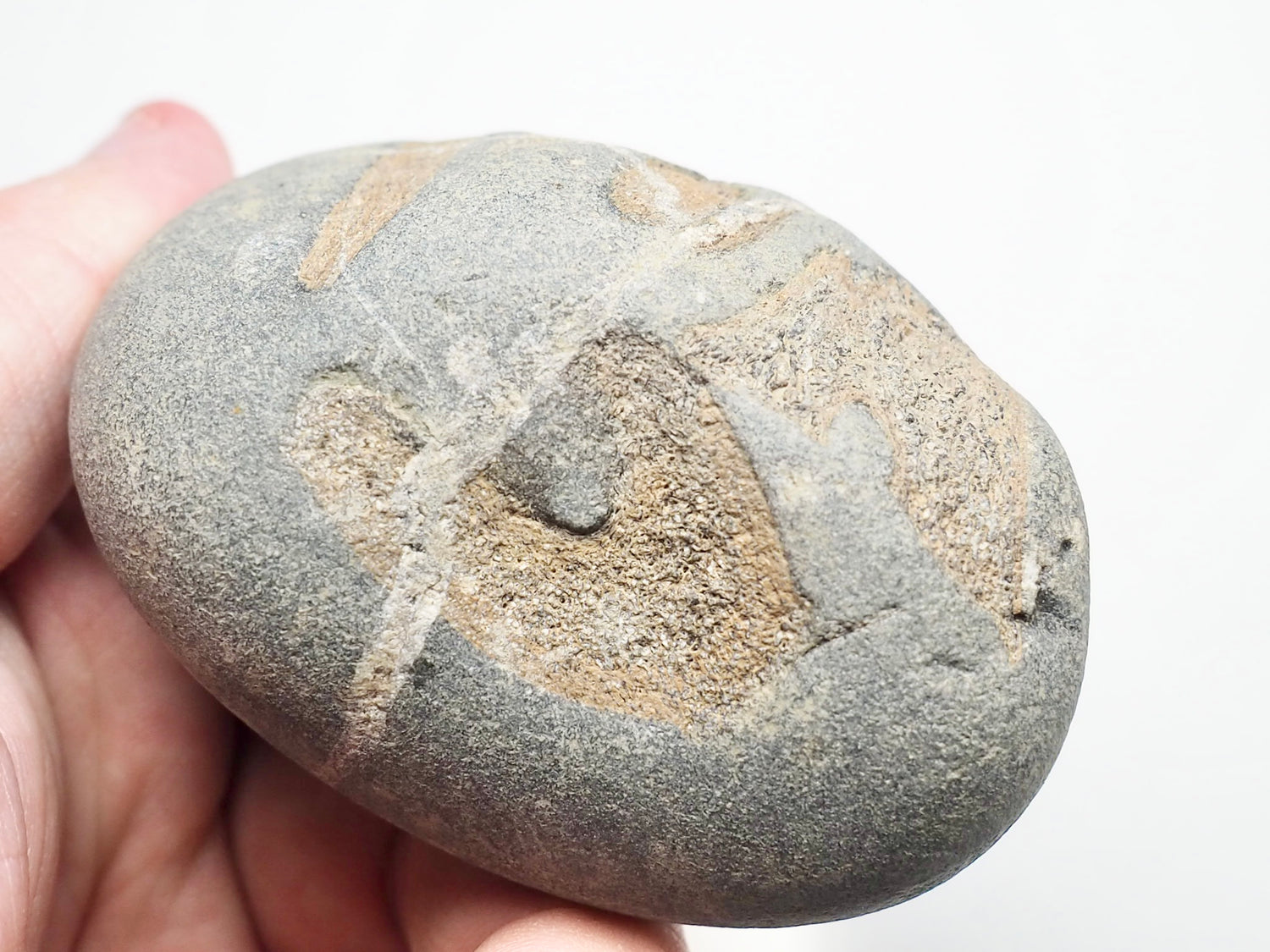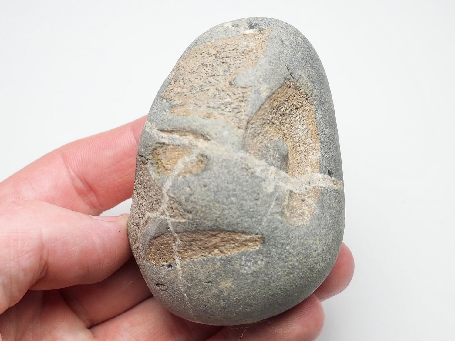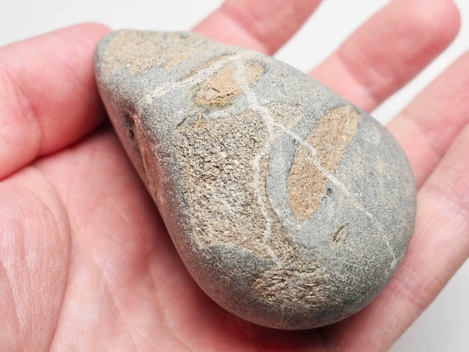 A Seaworn pebble containing bones from an ichthyosaur.