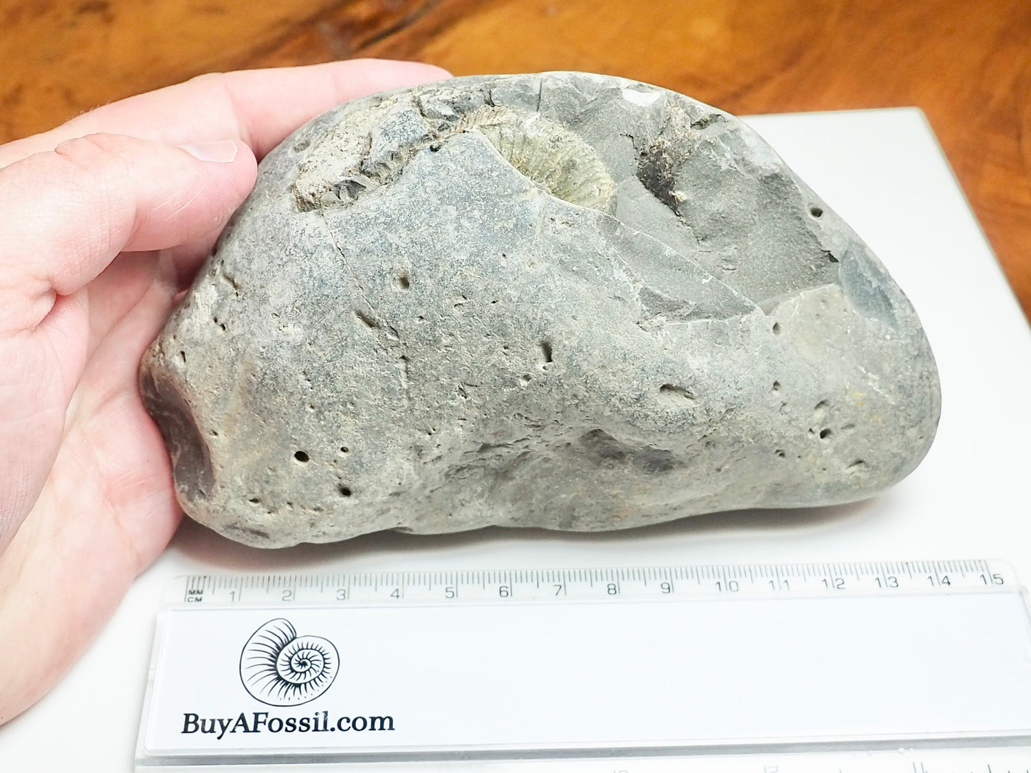 This natural ammonite nodule was collected from the famous fossil beaches around Whitby on the Yorkshire Coast. These Jurassic nodules formed around 180 million years ago and contain beautifully preserved ammonite fossils inside.