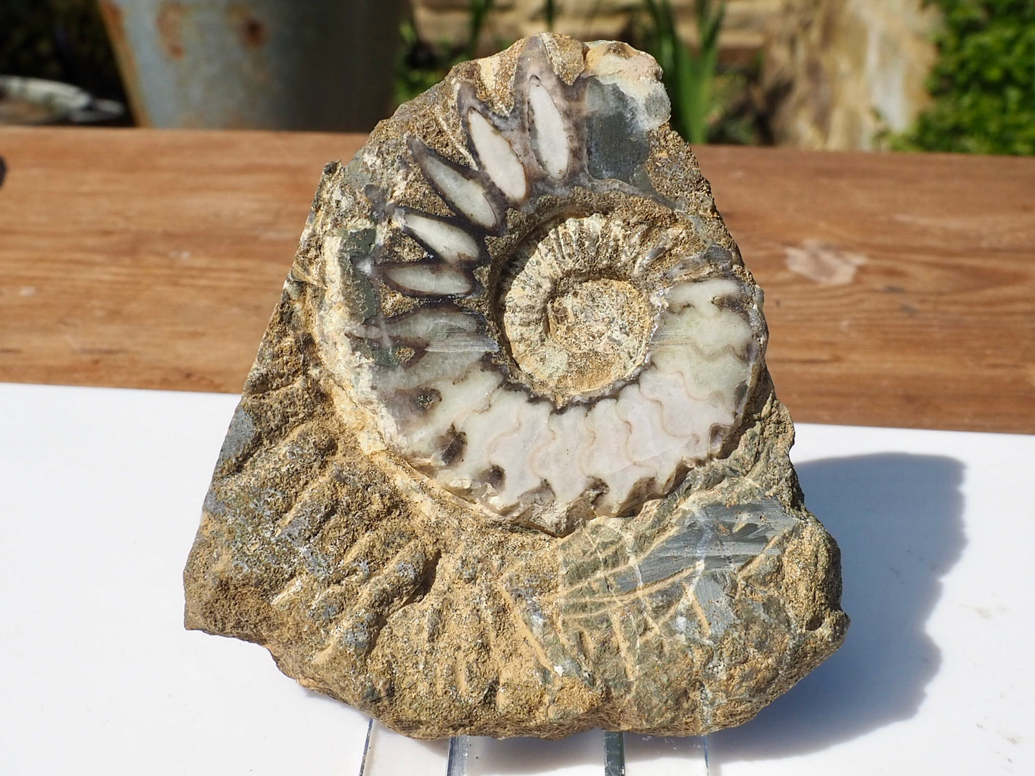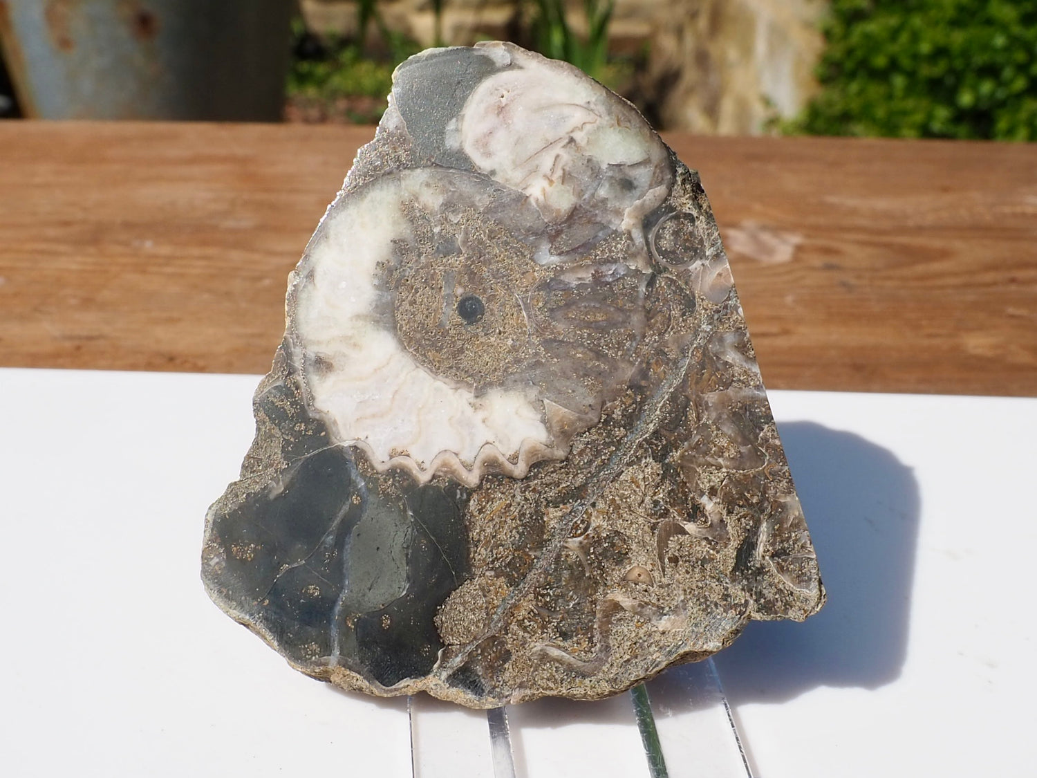 A stunning cut and polished ammonite available for sale. Available with a Cutbase