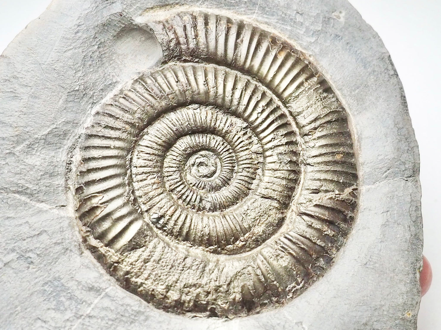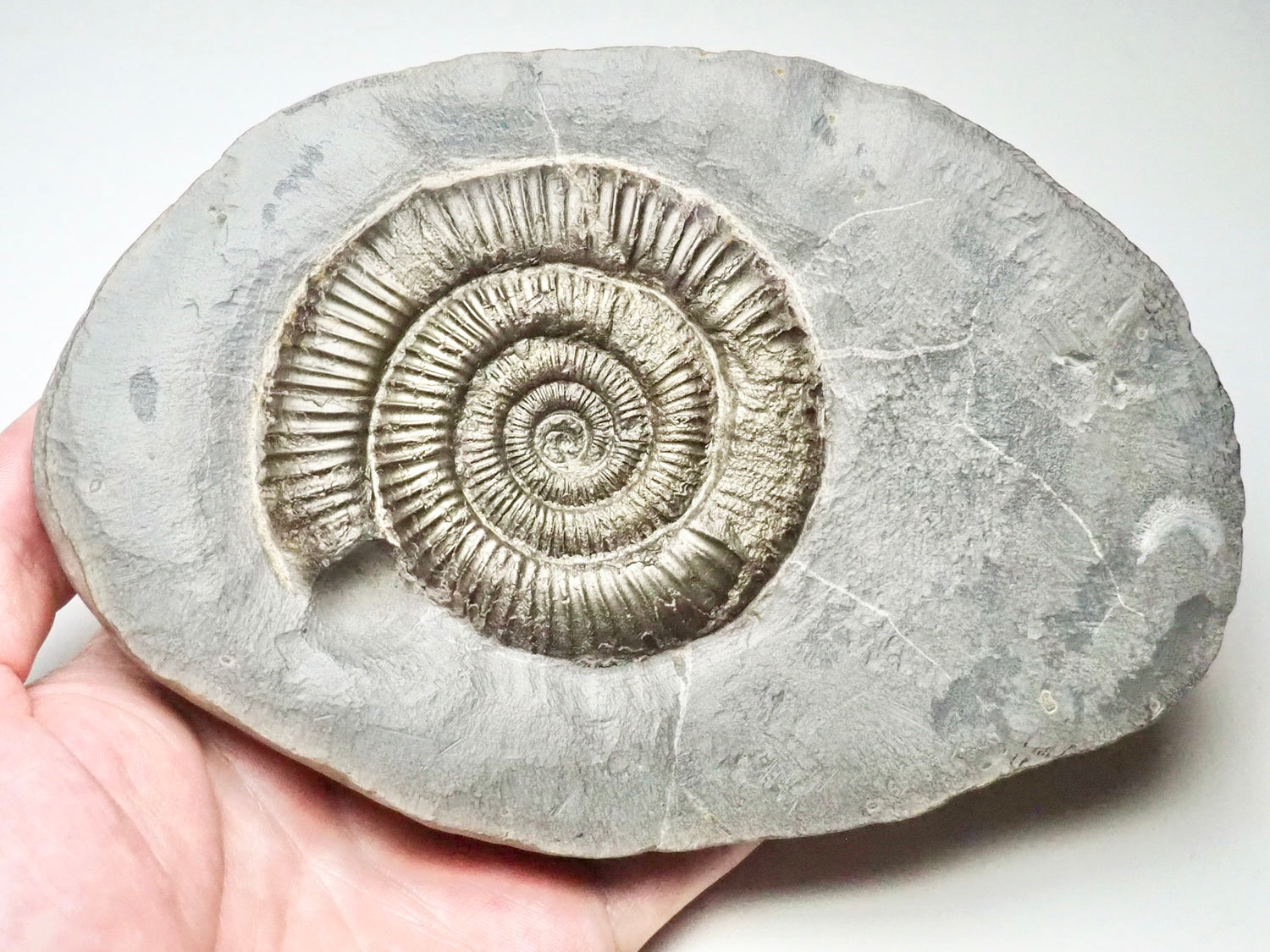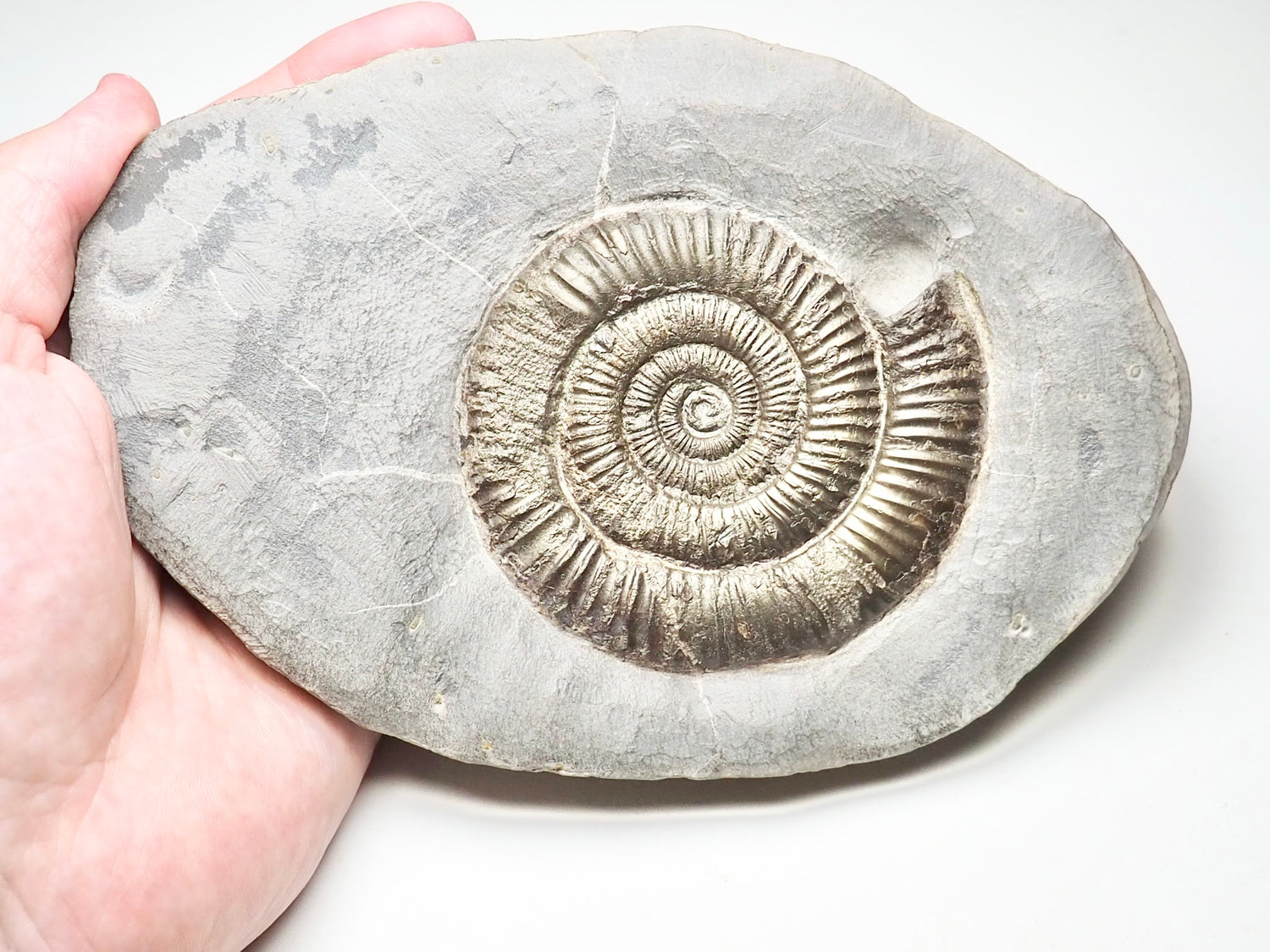 A prepared Dactylioceras fossil found near Whitby on the Yorkshire Coast. A great fossil on a large piece of matrix.