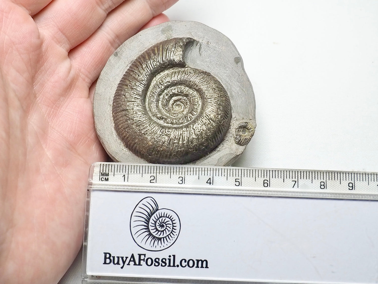 The ammonite shown in the pictures is the exact one you will receive. A different species of Dac from the usual. There is a tiny ammonite washed up among side it.
