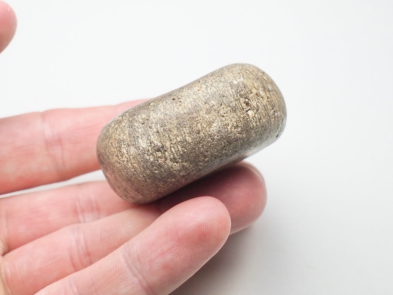 A sea rolled Ichthyosaur bone. Possibly a verteba or paddle bone from the Jurassic Marine Reptile found on the Yorkshire Coast. (Whitby).