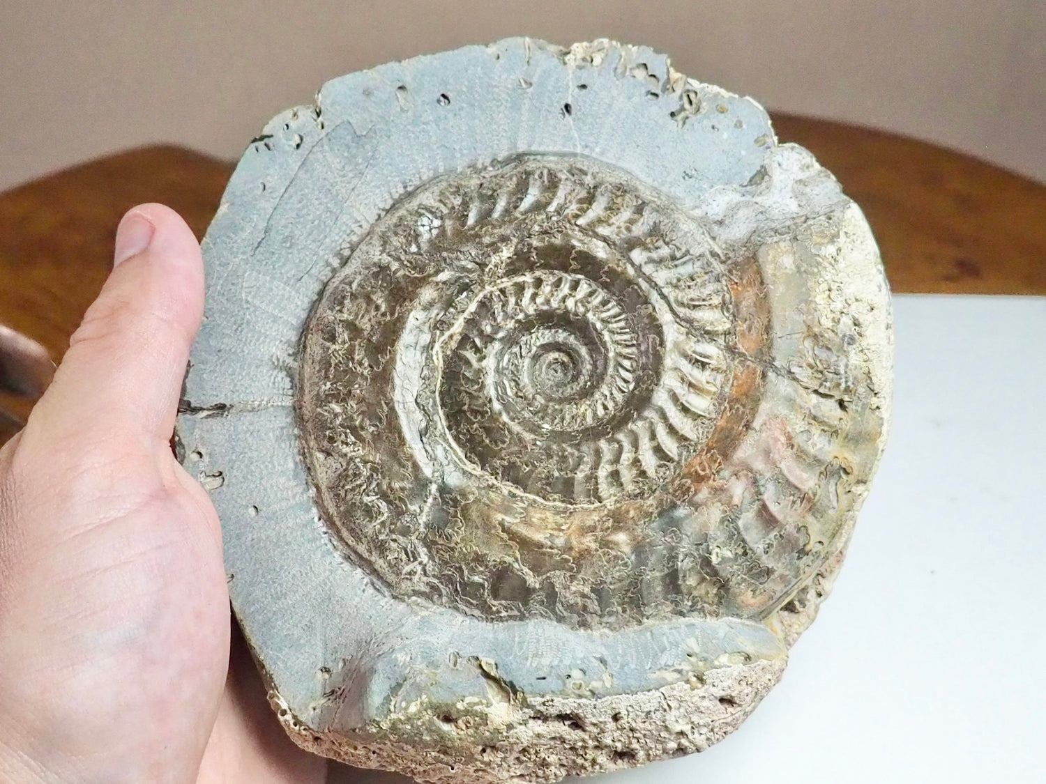 A Hildoceras ammonite fossil found in a rock pool near Whitby on the Yorkshire Coast.