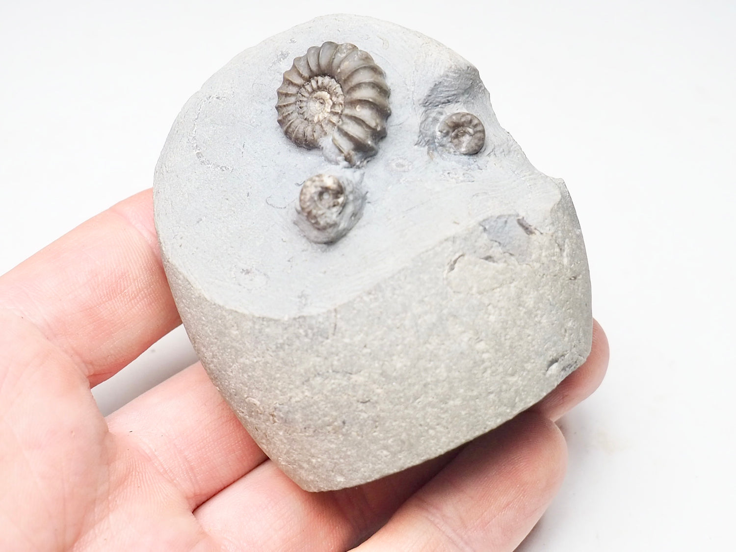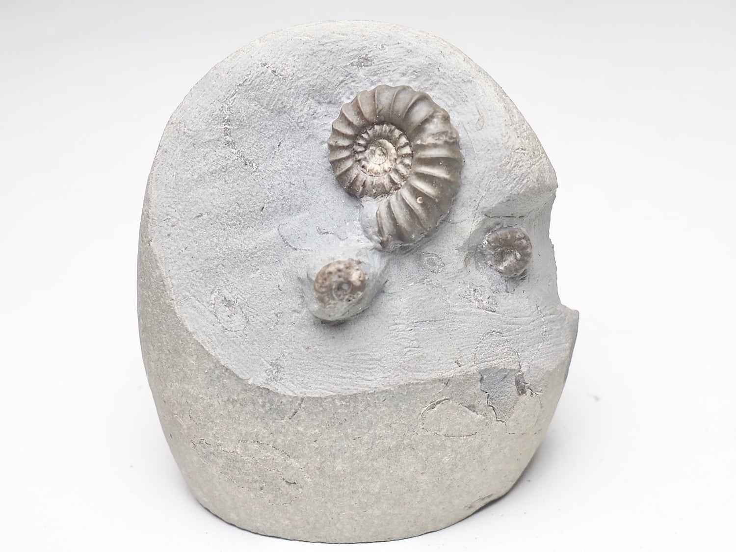 A small but rarely found on the Yorkshire coast ammonite piece available for sale. Cutbase for display.