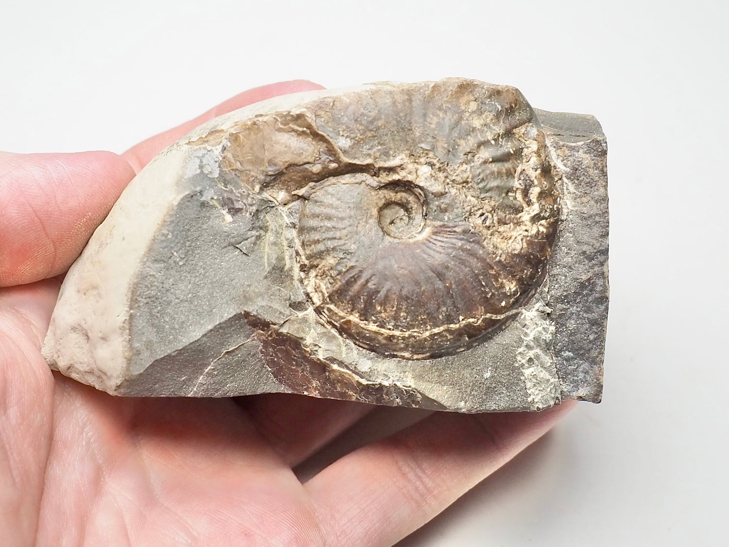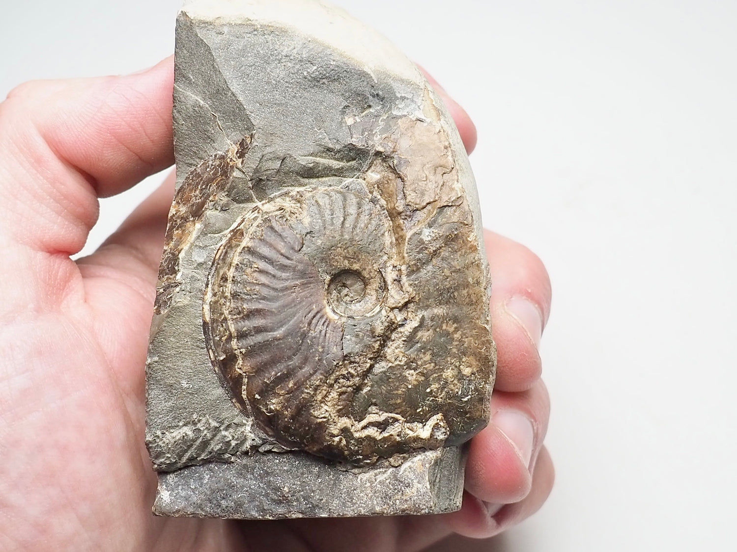 A nicely prepared Pseudolioceras ammonite fossil found near Whitby on the Yorkshire Coast. A more uncommonly found species around the Whitby Beaches.