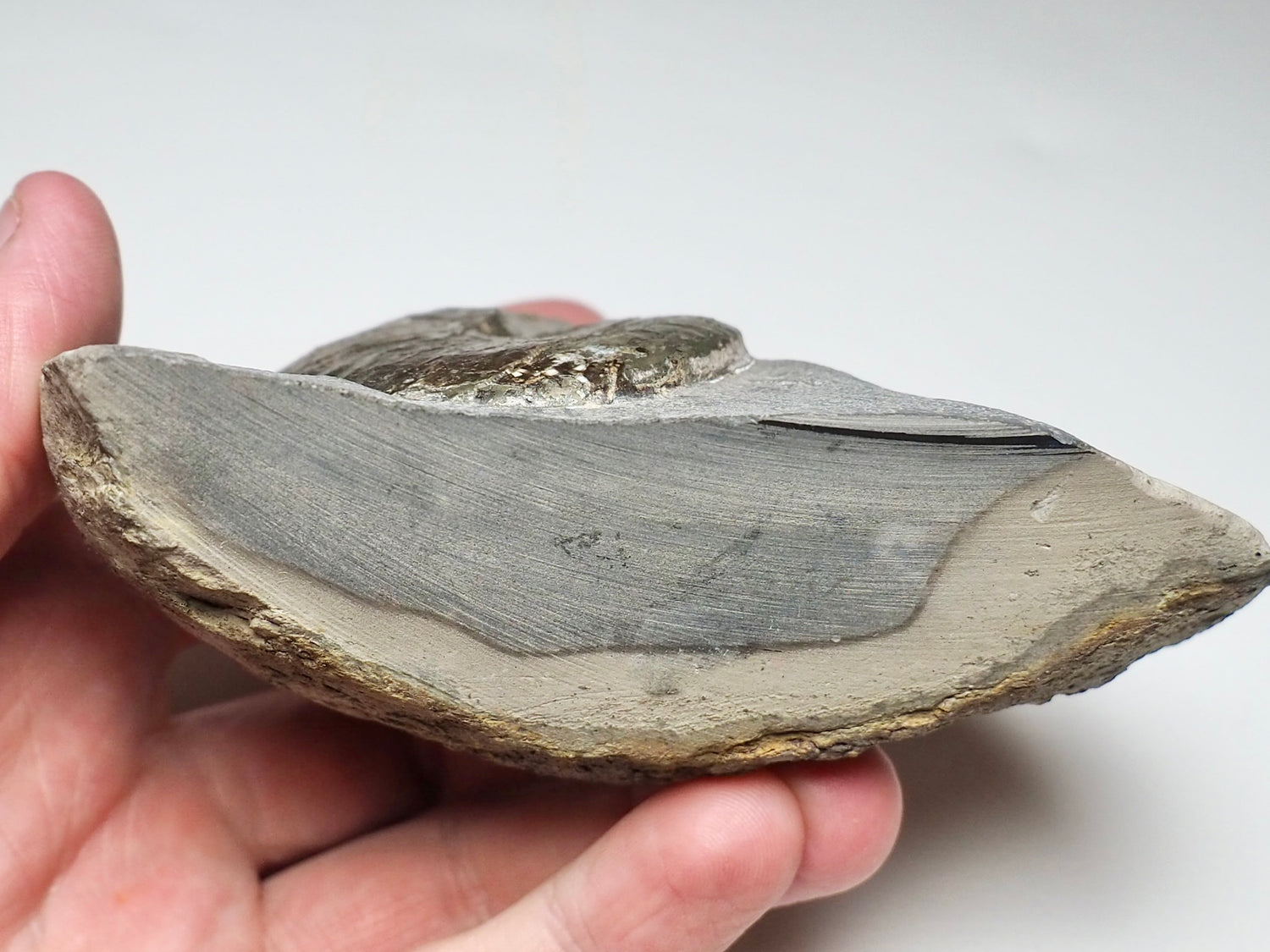 The ammonite shown in the pictures is the exact one you will receive. Repair on the back as shown in image 4. It has a cutbase for display.