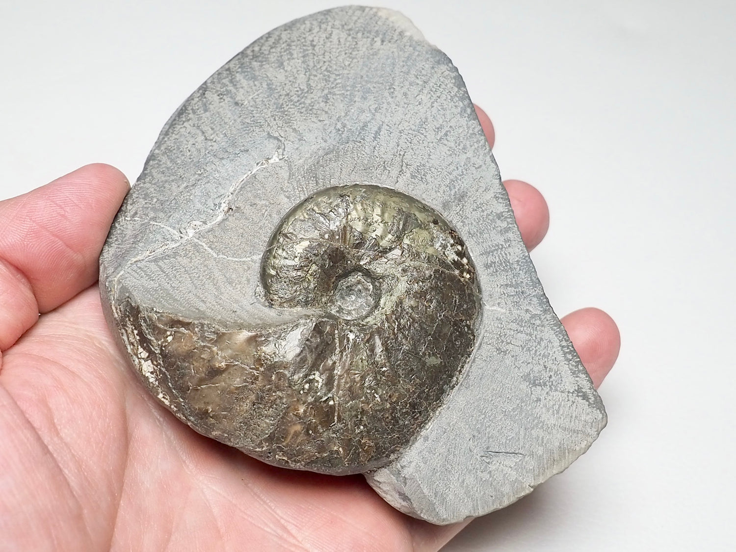 A nicely prepared Pseudolioceras ammonite fossil found near Whitby on the Yorkshire Coast. A more uncommonly found species around the Whitby Beaches.