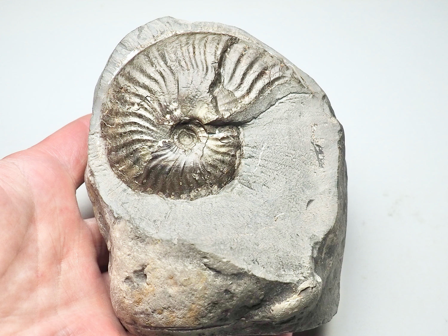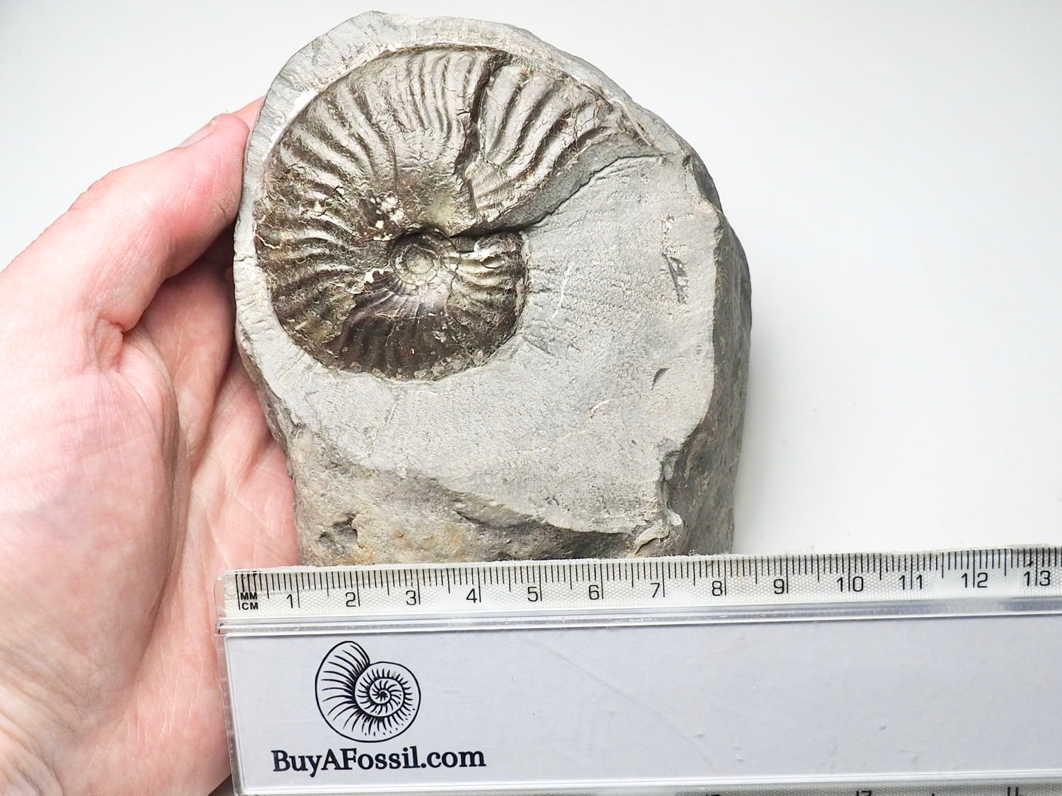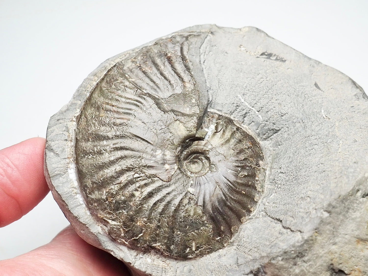 A nicely prepared Pseudolioceras ammonite fossil found near Whitby on the Yorkshire Coast. A more uncommonly found species around the Whitby Beaches. Cutbase for display.