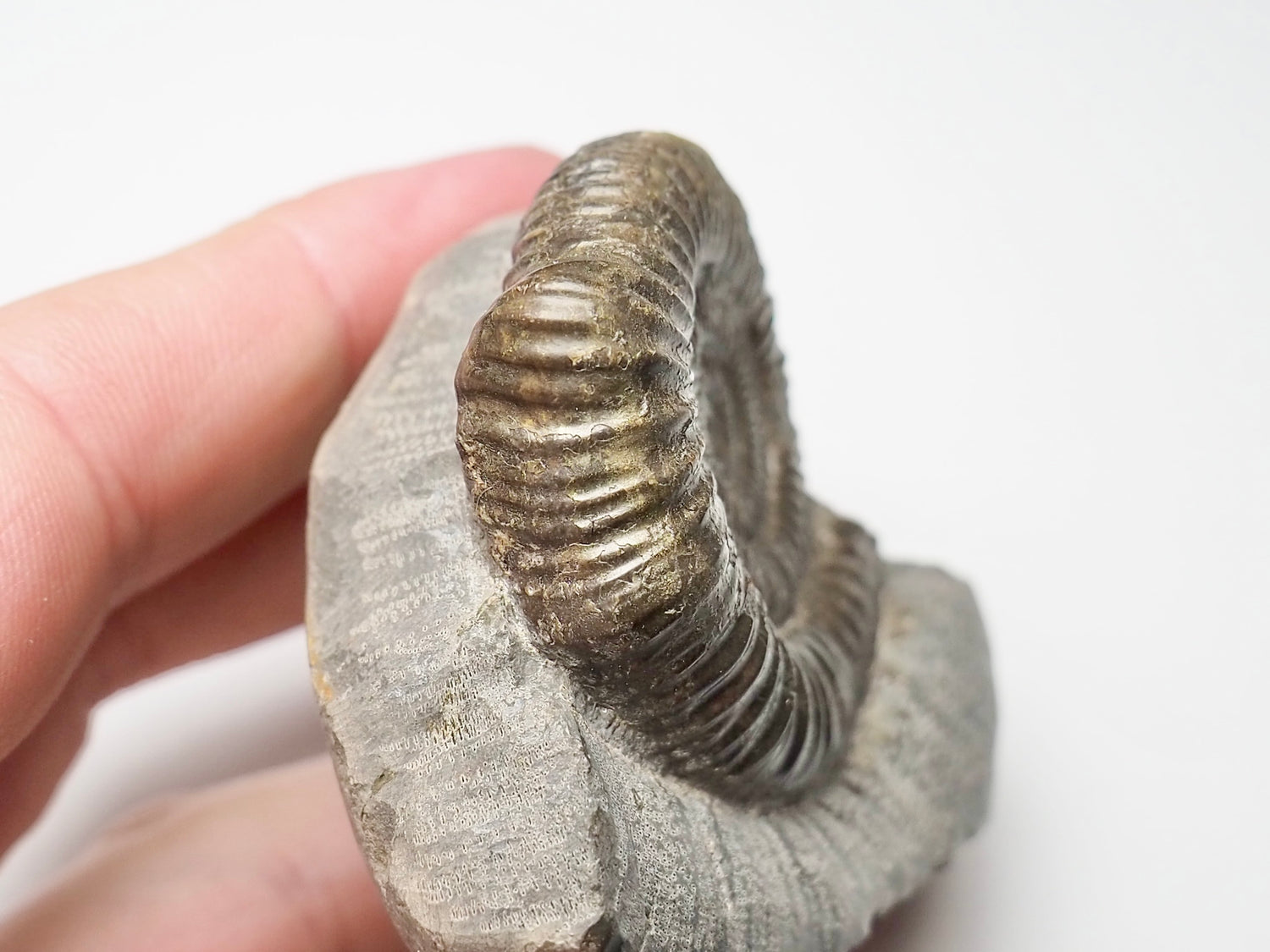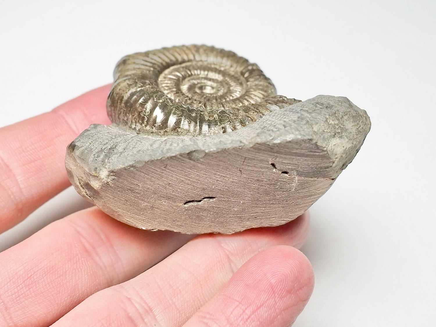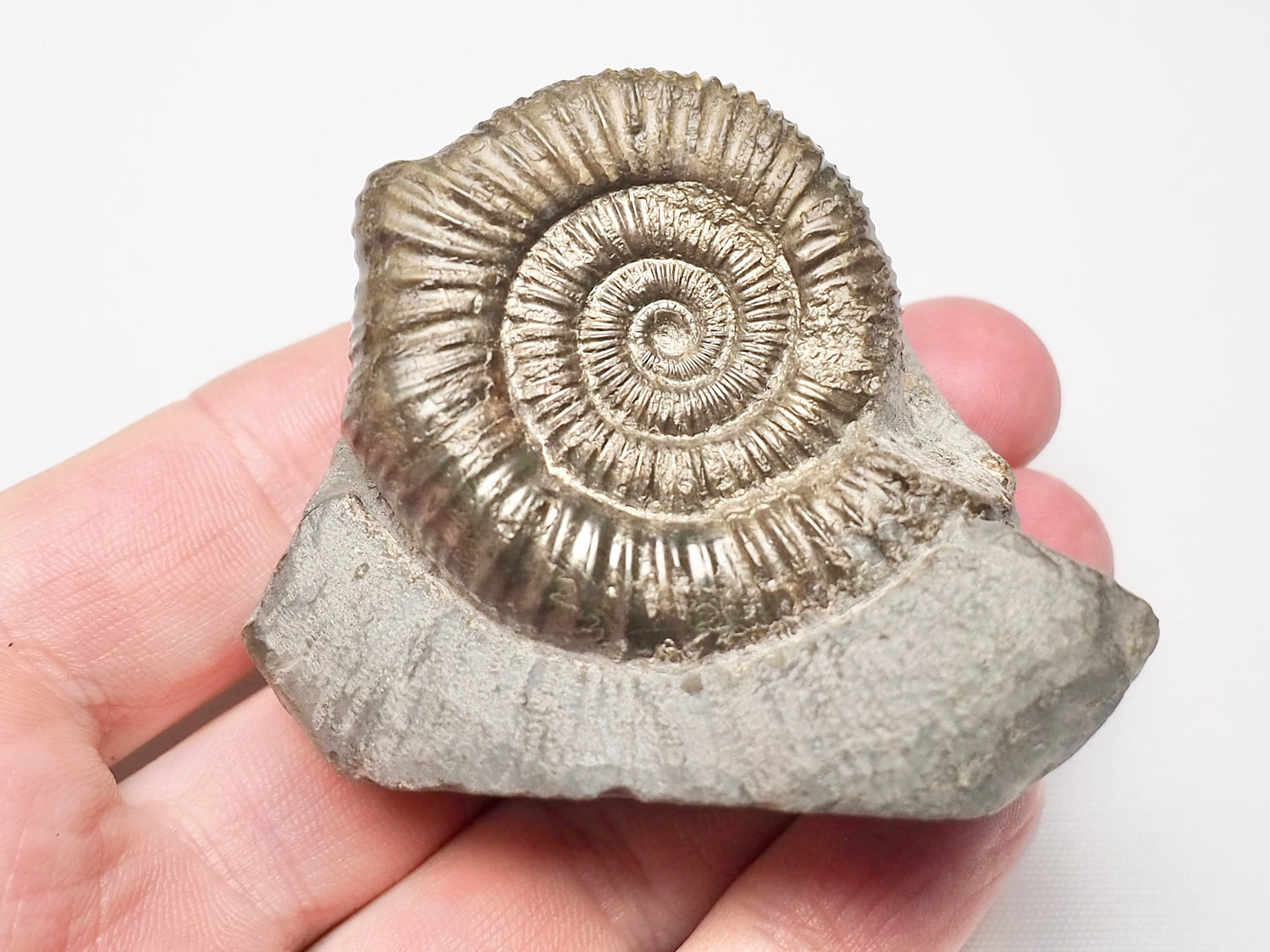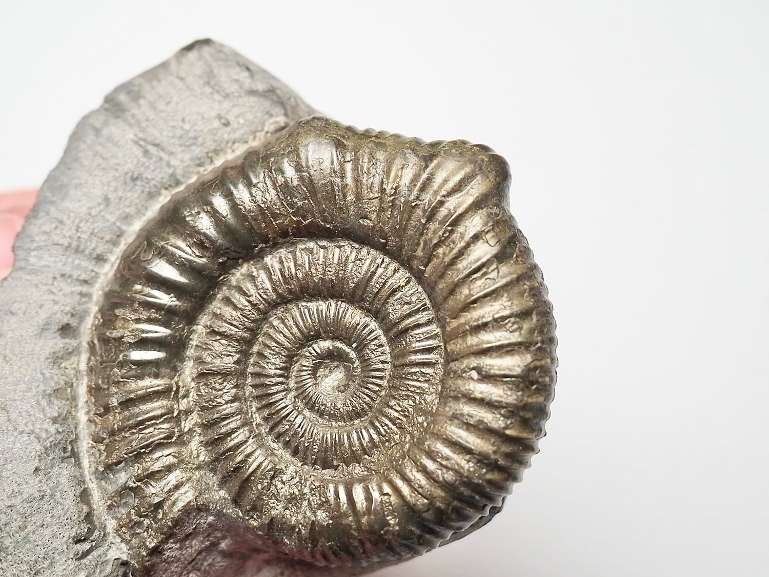 A beautifully prepared example of a dactylioceras ammonite fossil found near Whitby on the Yorkshire Coast. The whorl has a pathology which would have caused this ammonite some trouble in life.