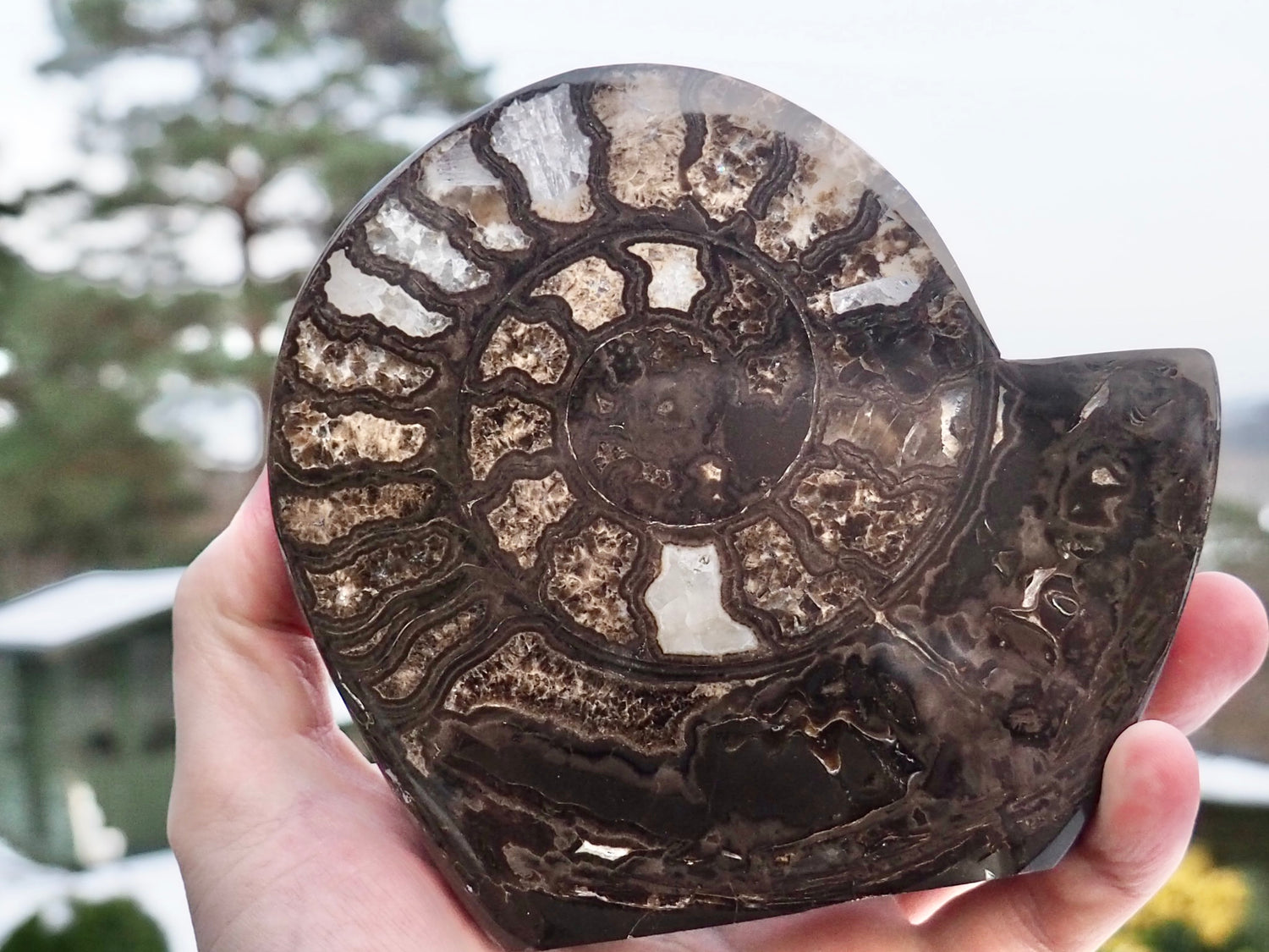 Very rarely encountered in cut and polished form, Hildoceras ammonites offer an exceptionally striking way to display this iconic species. Polishing enhances the natural colours and internal detail, revealing features rarely seen in unprepared examples. The photographs do not do this fossil justice — showcasing outstanding calcite preservation, this is a truly one-of-a-kind specimen. Finished with a precision-cut base for elegant display and polished on both sides.
